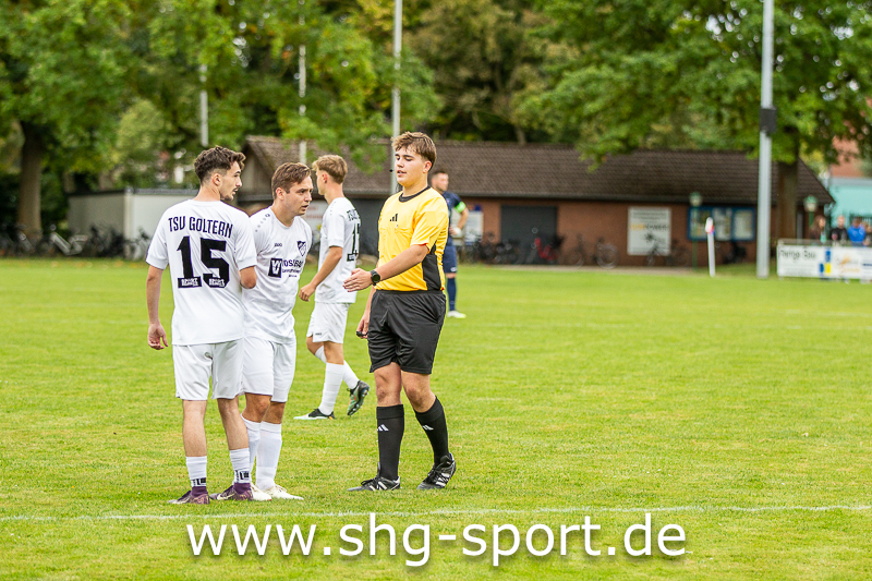 Nach dem Seitenwechsel folgte der große Auftritt des Tages: In der 52. Minute eroberte Pascal Holz den Ball im Mittelfeld, Jan-Malte Sydow ließ zwei Gegenspieler stehen und netzte zum 3:0 ein – sein dritter Treffer an diesem Nachmittag. Doch anstatt die Führung souverän auszuspielen, verlor der TuS im Anschluss zunehmend die Kontrolle. In der 71. Minute verkürzte Goltern durch Leon Akopian, der eine starke Vorarbeit von Aydan Merwan Hussein Hussein volley verwertete. Nur fünf Minuten später schwächte sich der TSV zusätzlich, als Mahsum Bayram nach einem Handspiel mit Gelb-Rot vom Platz musste. Trotz Überzahl wurde Lindhorst in der Schlussphase nervös. Goltern warf alles nach vorne, vergab durch den eingewechselten Robin Busch mehrere Chancen und hatte in der 90. Minute Pech, als ein Schuss von Hussein nur an die Latte krachte. Doch der Abpraller landete bei Anton Preise, der zurücklegte auf Amad Merwan Hussein – dessen strammer Schuss aus 18 Metern schlug zum 3:2-Anschluss ein.
