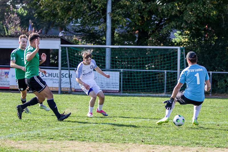 Die Lindhorster traten mit einer ungewohnten Formation an: Maximilian Lanz rückte für Bjarne Krause ins Tor, Luis Othmer übernahm die Außenverteidigerposition und Jasper Möller agierte als „Sechser“. Trotz dieser Umstellungen fand der TJL von Beginn an gut in die Partie und nutzte immer wieder die offenen Räume in der Luther Defensive. Chancen im Minutentakt blieben jedoch ungenutzt, vor allem weil TSV-Keeper Timo Lohmann einen Sahnetag erwischte. Wie es im Fußball oft läuft, nutzten die Gastgeber ihre erste Gelegenheit zur Führung: In der 18. Minute zog Sean Marcus Finlay aus gut 20 Metern ab, der Ball schlug unhaltbar im Winkel ein – 1:0. Die Antwort der Gäste ließ allerdings nicht lange auf sich warten. Nur zwei Minuten später bediente Miles Sydow den gestarteten Jasper Möller, der abgeklärt zum 1:1 einschob. Doch Luthe schlug sofort zurück: Nach einem umstrittenen Zweikampf im Strafraum schaltete die Lindhorster Hintermannschaft kurz ab, Julian Reiter nutzte die Gelegenheit und traf aus acht Metern zum 2:1 (24.). Bis zur Pause erspielte sich der TJL noch zahlreiche gute Möglichkeiten durch Steigmann, Schütte, Miles und Jan-Malte Sydow, scheiterte jedoch entweder an der Präzision oder erneut am starken Lohmann.