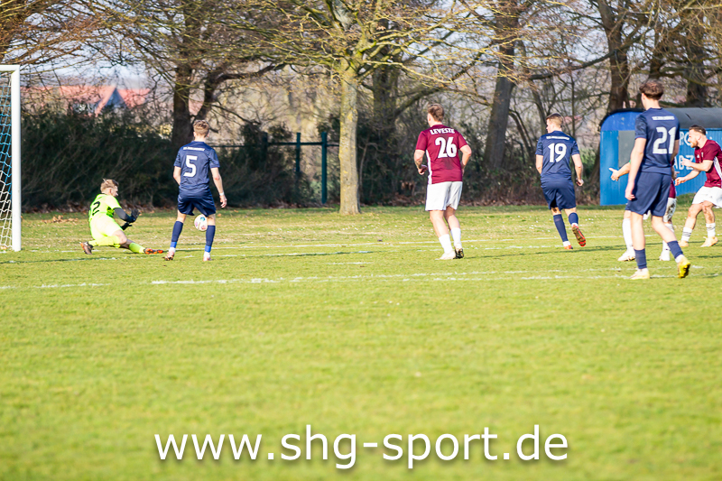 Doch die Antwort der Gäste ließ nicht lange auf sich warten. Bereits sechs Minuten später gelang der Ausgleich: Alperen Karayaka drang über die rechte Seite in den Strafraum ein. Die Lindhorster Defensive agierte dabei zögerlich, offenbar um keinen Elfmeter zu riskieren. Sein Abschluss sprang vor dem Tor noch auf und rutschte dem Torhüter unglücklich über die Hand zum 1:1.Leveste blieb nun am Drücker und drehte die Partie in der 72. Minute komplett. Ein langer Ball erreichte Steve Goede, der sich gegen Dustin Jung behauptete und den Ball aus etwa 16 Metern sehenswert und unhaltbar zum 2:1 für die Gäste versenkte.