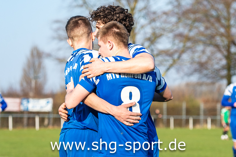 So brauchte es fast 40 Minuten ehe die Gastgeber wirklich gefährlich wurden. Ein Freistoß von der Strafraumgrenze führte dann zur Führung. Julian Lattwesen zirkelte den Ball über die Mauer an den Pfosten, der Ball sprang quer vor das Gästetor und fiel Grittner vor die Füße. Der traf dann zum 1:0 (39.). In der Nachspielzeit der ersten Hälfte trat Lattwesen einen Eckball halbhoch auf Höhe des ersten Pfostens, dort nahm Grittner den Ball volley und erzielte das 2:0 (45.+2). Nach dem Seitenwechsel vermittelte der MTV den Willen, jetzt endlich ernsthafter zu agieren.