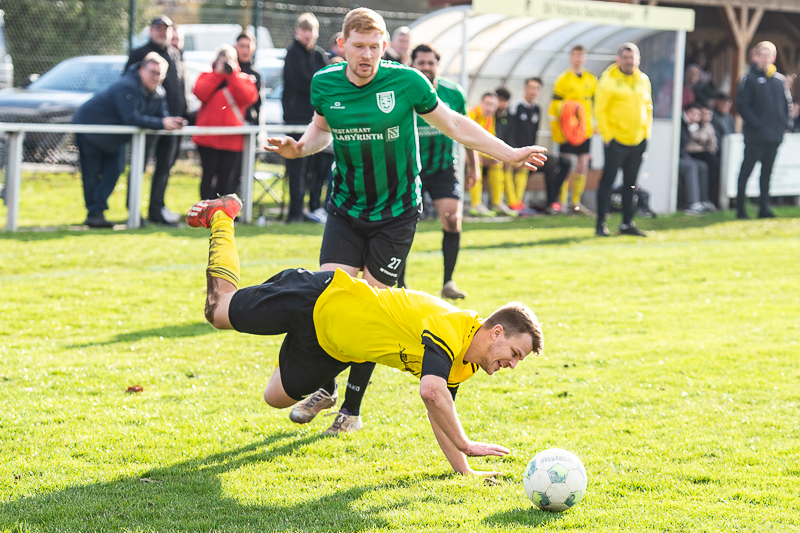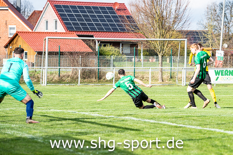 Es dauerte bis zur 25. Minute, ehe Sachsenhagen deutlicher in die Offensive kam. Tim Hensel hatte die größte Chance in der ersten Hälfte, sein Schuss aus spitzem Winkel wurde vom Hesper Keeper Filip Munevski gerade noch an den Pfosten gelenkt. In der Folge gab es immer wieder zerfahrene Phase mit schnellen Ballverlusten auf beiden Seiten. Nach dem Seitenwechsel wirkte Sachsenhagen wesentlich entschlossener in den Zweikämpfen, berannte das Hesper Tor. Zwingendes sprang dabei nicht heraus, In der 60. Minute verfehlte ein direkter Freistoß aus 20 Metern von Tim Hensel das Tor nur um Millimeter.