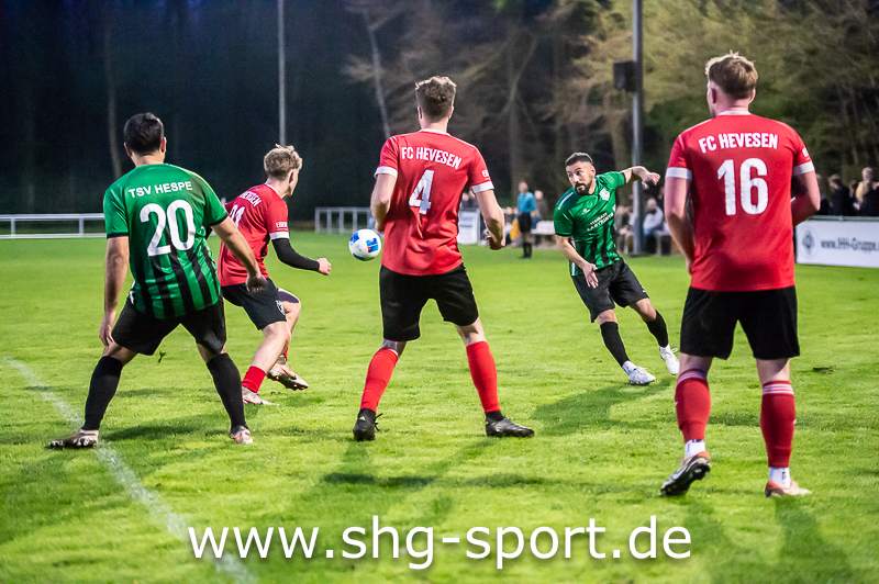 Bereits nach wenigen Minuten ging Hespe in Führung. Ein Eckball von der rechten Seite wurde von Niklas Völkening per Kopf zum 1:0 verawertet (52.). Hevesen reagierte, rückte weit auf, Hespe ließ sich hinten rein drücken. Die Gäste generierten Chancen, waren aber anfällig für Konter. Die kamen, Phil Maier tauchte nach einem individuellen Abwehrfehler vor FCH-Keeper Dennis Treichel auf, verzog aber. Charly Tunc traf nur den Pfosten, scheiterte in der Nachspielzeit am FCH-Keeper. Auf der anderen Seite erzielte Alexander Wellschmidt per Kopf den verdienten 1:1-Ausgleich (75.).