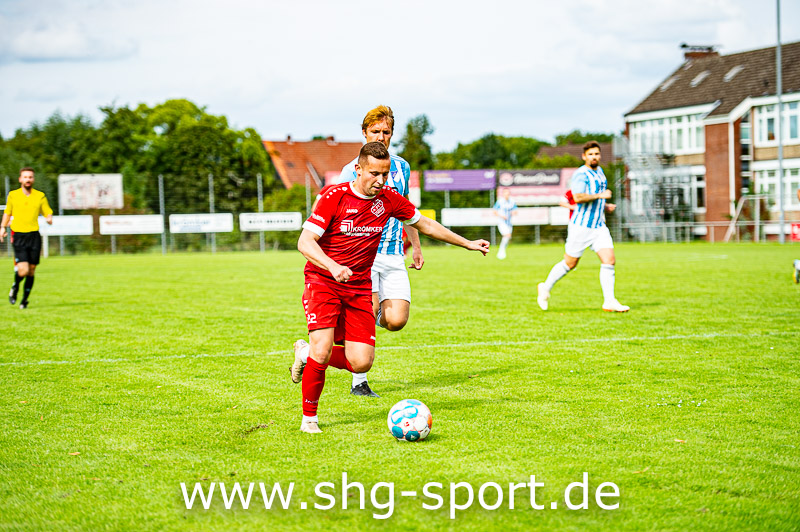 VfR-Coach Heiko Thürnau mochte seiner Mannschaft keinen Vorwurf machen. „Zu Anfang haben wir uns zu weit hinten rein drängen lassen, haben leider Gottes den einen oder anderen Fehler im Spielaufbau gemacht, hatten keinen Zugriff“, sagte Thürnau. Je länger das Spiel dauerte desto dominanter wurden die Gastgeber. Pattensen war mit Kontern immer gefährlich, so in der 17. Minute. Christoph Björn Samow sah eine Lücke, zog aus rund 20 Metern ab und traf zum 1:0 für die Gäste. Im Anschluss drückte Evesen immer stärker, vernachlässigte dabei die Außenbahnen, traf falsche Entscheidungen beim Passspiel. Die wenigen echten Chancen, darunter ein Lattentreffer von Civan Ertem, wurden vergeben. Auf der anderen Seite kam VfR-Keeper Nick Völkening bei einem langen, hohen Ball nicht entschlossen genug heraus. Steven Melz war vor Völkening mit dem Kopf am Ball und traf zum 2:0 (34.).
