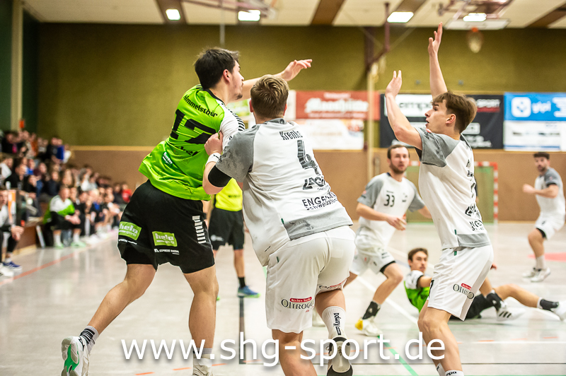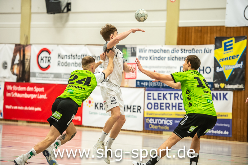 WALTRINGHAUSEN. Es war das letzte Spiel des Jahres 2025 und gleichzeitig der Beginn der Rückrunde: Der Handball-Regionalligist HSG Schaumburg hatte den TuS GW Himmelsthür zu Gast und beschloss das Jahr mit einem 34:29 (19:12)-Heimsieg. Die Stimmung in der Halle hielt sich in Grenzen, die dargebotenen Leistungen luden nur bedingt zum Feiern ein. „Es war kein gutes Spiel, wir hatten eine starke Viertelstunde“, erklärte Coach Timm Dietrich. Das war die Zeit zwischen der 15. und 30. Spielminute, die reichte der HSG um das Spiel praktisch zu entscheiden. Eine wichtige Stütze war dabei die stabile Leistung von HSG-Torwart Kjell Motzkus.