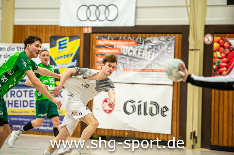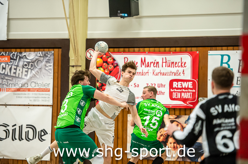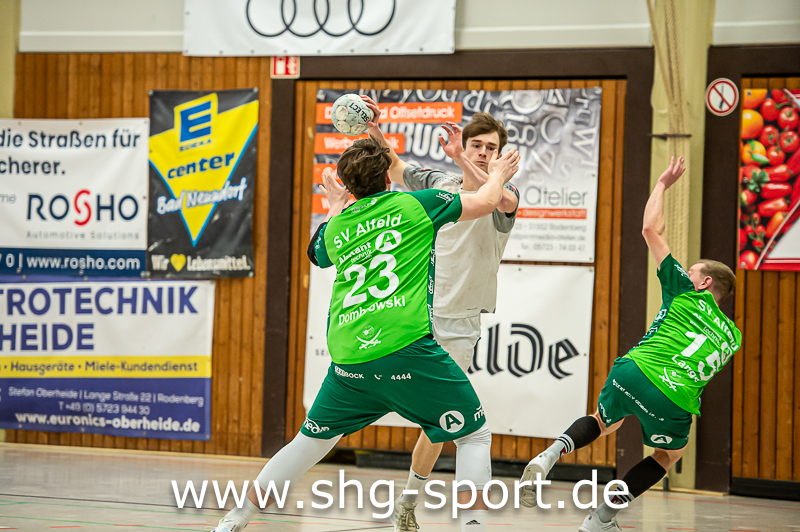 Neben Knüttel machten Haakon Wiebe (acht Tore) und als Lenker in Angriff und Abwehr Corven Krenke den Unterschied. „Wir haben in der Abwehr gut gedeckt. Ab der 45. Minute bekommen wir nur noch wenige Gegentore, vorne war dann auch die Luft ein bisschen raus“, sagte Dietrich. Alfelds Coach Robin Thiele, in der vergangenen Saison noch bei der HSG, nahm die Niederlage im Abstiegskampf hin. „Wir wollten Tempo spielen, dass haben wir nicht geschafft. Am Ende eine gerechte Niederlage, wir haben keine Körpersprache auf den Platz gebracht“, so Thiele. In der ersten Halbzeit ließ die beidseitige hohe Fehlerquote kein flüssiges Spiel zu.