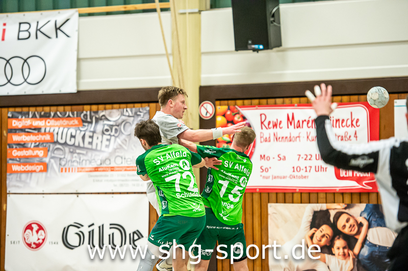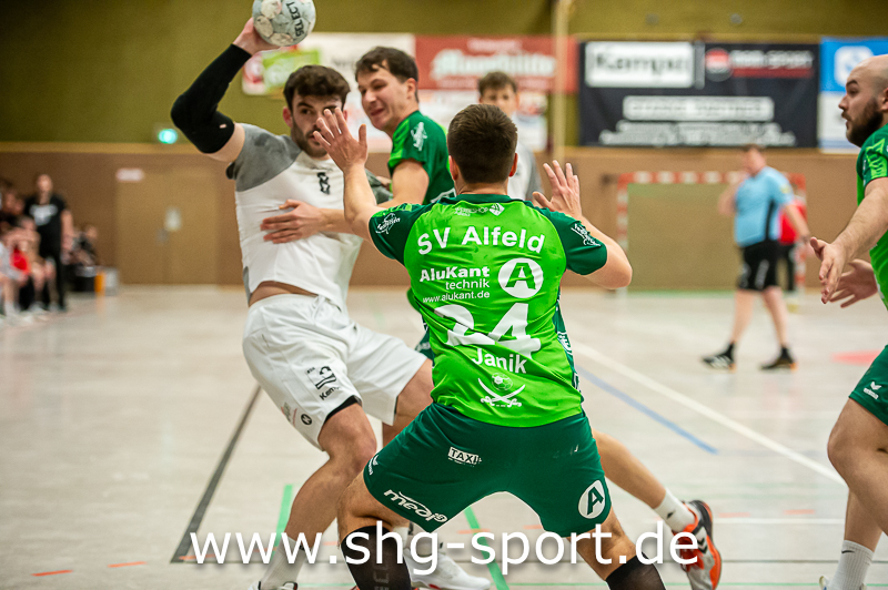 Dabei begann die HSG gut, führte 4:2 (6.). Es folgten drei, vier leicht verschossene Chancen, statt 6:2 stand es plötzlich 4:5 (9.) gegen die HSG. Das Spiel schleppte sich dann zäh hin, vom 7:10 (19.) glich die HSG zum 11:11 (26.) durch Daniel Bruns aus, ehe Knüttel die Treffer zur 14:11-Pausenführung gelangen. Nach dem Seitenwechsel gelangen den Gastgebern gute Abschlüsse, die Führung wuchs auf 20:13 (40.) an. Alfeld hatte eine Schwächephase, während die HSG ihre Führung auf 23:14 (44.) ausbaute. Jetzt ließ das Spiel nach, Alfeld versuchte so etwas wie ein Aufbäumen, die Führung der Gastgeber schmolz auf 24:20 (51.). Das war es dann aber auch, Alfeld wurde in der Abwehr eher halbherzig offensiver, die HSG zeigte sich unbeeindruckt und brachte den Heimsieg unter Dach und Fach.