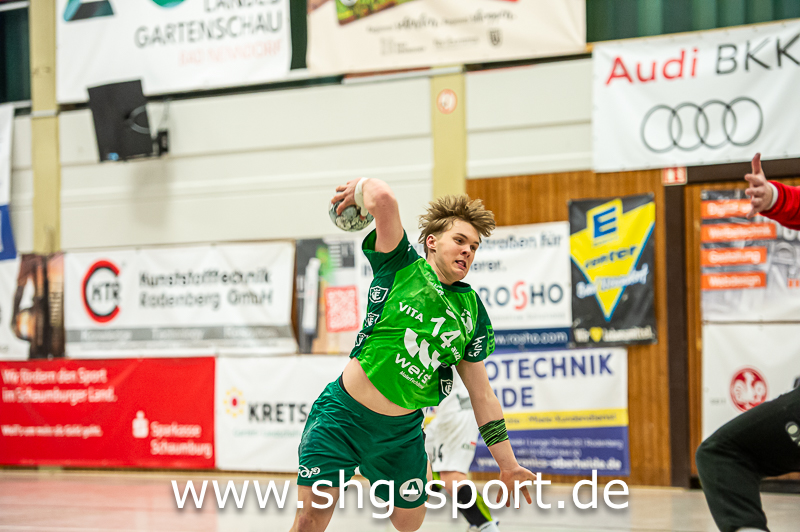 Waltringhausen. Der Handball-Regionalligist HSG Schaumburg hat durch einen 33:27 (14:11)-Heimsieg gegen den SV Alfeld den aktuell siebten Platz im Mittelfeld der Tabelle gesichert. So weit, so gut, ein klares Ergebnis mit der Erkenntnis: „Wir haben uns nicht mit Ruhm bekleckert“, räumte HSG-Coach Timm Dietrich ein. Das traf insbesondere für die erste Halbzeit zu, in der beide Mannschaften lange Zeit alles an Fehlern mögliche produzierten. Die HSG drehte das Spiel zwischen der 26. und 39. Minute. Niklas Knüttel, der mit zwölf Treffern seine gute Form bestätigte, schoss mit drei Toren in Folge die 14:11-Pausenführung heraus, kurz nach Wiederanpfiff zur zweiten Halbzeit hatte sich die HSG auf 19:13 abgesetzt.