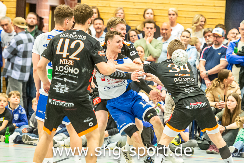 Die große Frage vor dem Derby war: Wie geht Großenheidorn mit dem Druck um, zeigen sie Nerven oder nicht? Es dauerte zwölf Minuten, dann nahm die HSG eine Auszeit, die Frage war klar beantwortet. 9:4 führte der MTV, die Gäste bekamen kaum ein Bein auf das Parkett, hatten mit dem erneut überragenden Julius Bausch als Antreiber massive Probleme. Dietrich stellte um, brachte den siebten Feldspieler. „Wir hatten gehofft, dass sie das spielen, sie können es nicht richtig, das war für uns super. Das es für uns nach vorne losgeht wussten wir, war schon im Hinspiel unser Gewinner. In der zweiten Halbzeit transportieren wir das durch“, so Lux.