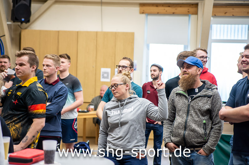 Im ersten Halbfinale setzte sich der spätere Sieger Massilge mit 5:3 gegen Stuhlemmer durch, dass zweite Halbfinale gewann Schütte gegen Atherton 5:3. Im Finale hieß es „Best of Eleven“, Massilge gewann die geforderten sechs legs, setzte sich mit 6:3 gegen Schütte durch. Ein leg gewonnen hat der, der von 501 Punkten auf 0 Punkte herunter kommt, wobei der letzte Wurf ein Doppel sein muss. Da heißt, der Pfeil muss im äußeren, schmalen Ring der Scheibe oder in der Mitte, dem „Bulls eye“, landen. Konopka freute sich über viel Mithilfe seiner Mannschaftskameraden bei der Organisation. Extra Unterstützung leisteten Andre Goertz und Christopher Lambrecht, sonst für Twitch mit Live-Übertragungen unterwegs, dort auch mit ihrem „la goal sporttalk aktiv.