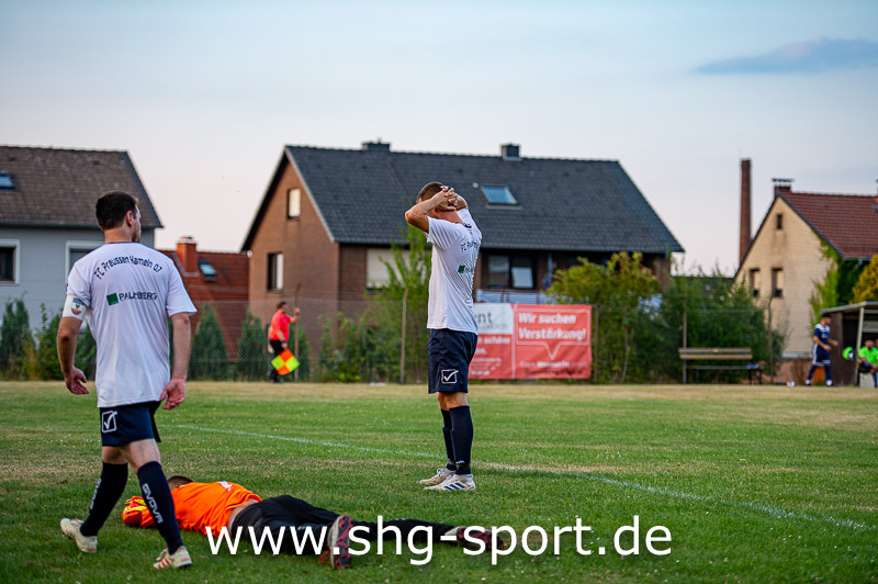 In der ersten Halbzeit tat sich der FC lange schwer, im wahrsten Sinne des Wortes. Alles ging zu langsam, vor allem die Abwehr stand zu weit vom Gegner und war insgesamt mehrfach nicht auf der Höhe. Torhüter Pöhler stand mehr als gewünscht im Mittelpunkt, in der 17. Minute beim 0:1 durch Aldin Dedeic war er dann machtlos. Der Rückstand und die Trinkpause hatten offenbar belebende Wirkung auf den FC und dessen Offensivabteilung. Der starke Bannert kam mehrfach bis auf die Grundlinie durch, eine Flanke nutzte der als Mittelstürmer eingesetzte Selim Kilinc zum 1:1 (32.). Im Anschluss geriet die Hamelner Abwehr ins schwimmen, eine erneute vor das Tor geschlagene Flanke von Bannert lenkte Jan-Philipp Schneider zum 2:1 für den FC ins eigene Tor (36.). Aber schon im Gegenzug gelang Jonas Schulze das 2:2 (38.), als die FC-Abwehr offenbar in Erwartung eines Abseitspfiffes einfach mal stehen blieb.