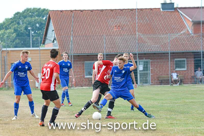Rehren A/R. In einem Testspiel hat sich der Fußball-Bezirksligist MTV Rehren A/R mit 5:1 (4:0) gegen den Kreisliga-Aufsteiger ETSV Haste durchgesetzt. Dabei ragte Marvin Jahn auf Seiten der Gastgeber mit drei Treffern (16., 26., 44.) Minute in der ersten Halbzeit heraus. Den Treffer zum 4:0-Halbzeitstand steuerte Malte Grittner bei (37.). Nach dem Seitenwechsel kam Haste nach einigen Wechseln besser ins Spiel, Maximilian Schmidt erzielte den 1:4-Ehrentreffer (63.). Gian-Luca Blume stellte nur vier Minuten später mit seinem Treffer den 5:1-Endstand her (67.). „Es war schon deutlich besser als vergangene Woche gegen Dedensen“, erklärte MTV-Cotrainer Jens Lattwesen. Man sei so bei 70 Prozent. „Da geht noch mehr“, meinte Lattwesen. Der in schlechtem Zustand befindliche A-Platz in Rehren machte beiden Mannschaften zu schaffen. Rehren habe auf die Fehler gewartet, „die wir dann auch gemacht haben. Auf diesem Niveau wird sowas natürlich sofort bestraft“, sagte ETSV-Coach Mike Schönherr. In Hälfte zwei habe man einige Torchancen erspielt, letztendlich sei Rehren bissiger und zweikampfstärker gewesen. „Ein guter Test für meine extrem junge Mannschaft mit hoffentlich guten Lerneffekt“, so Schönherr.