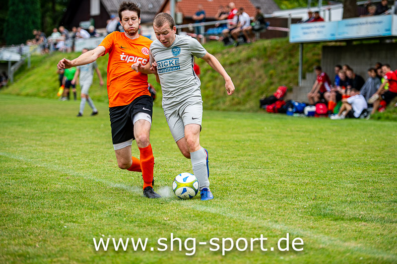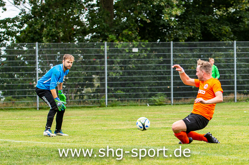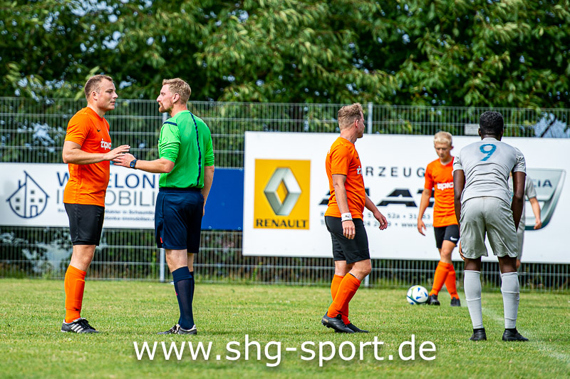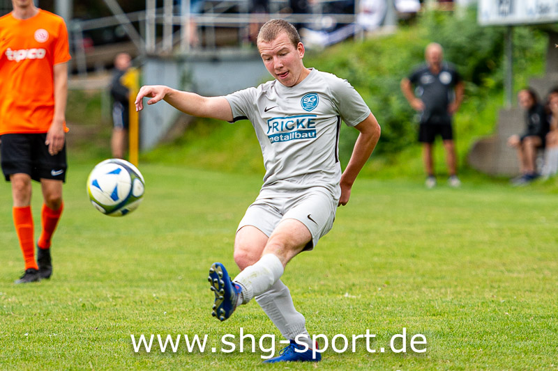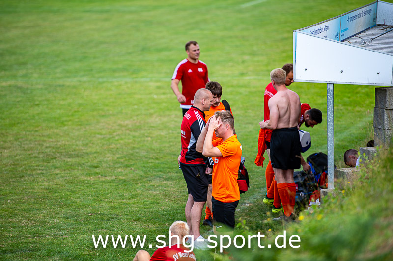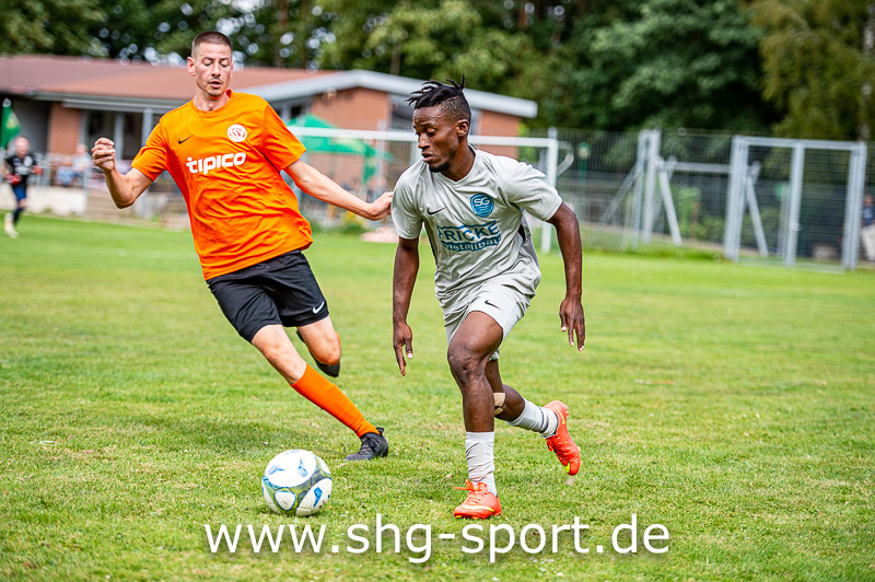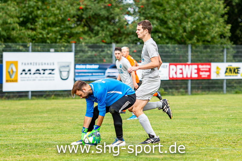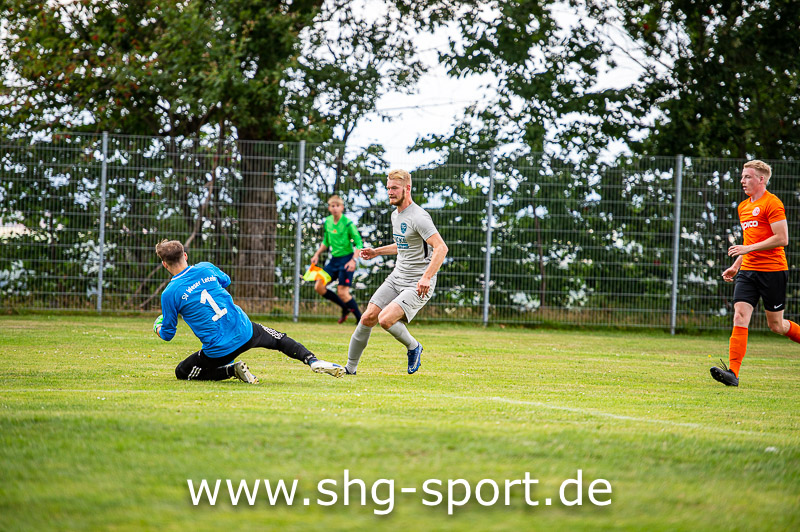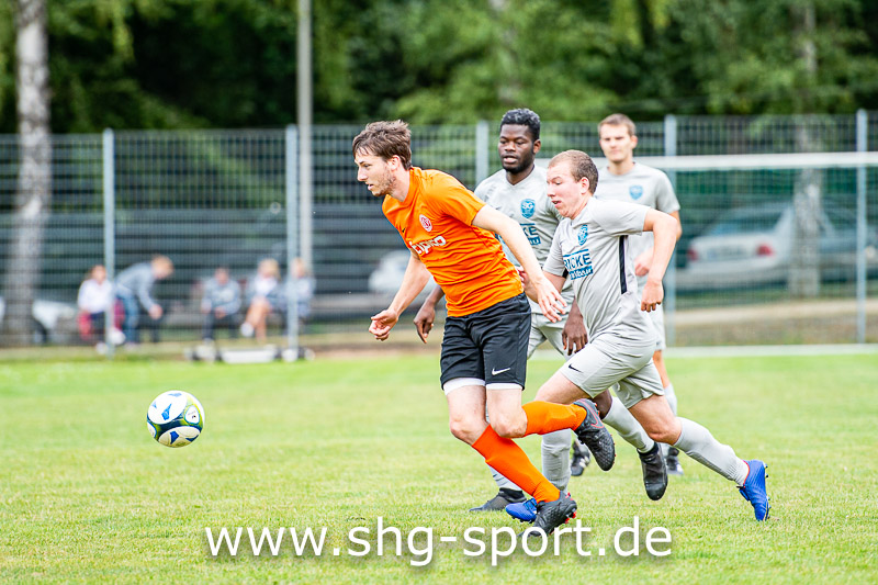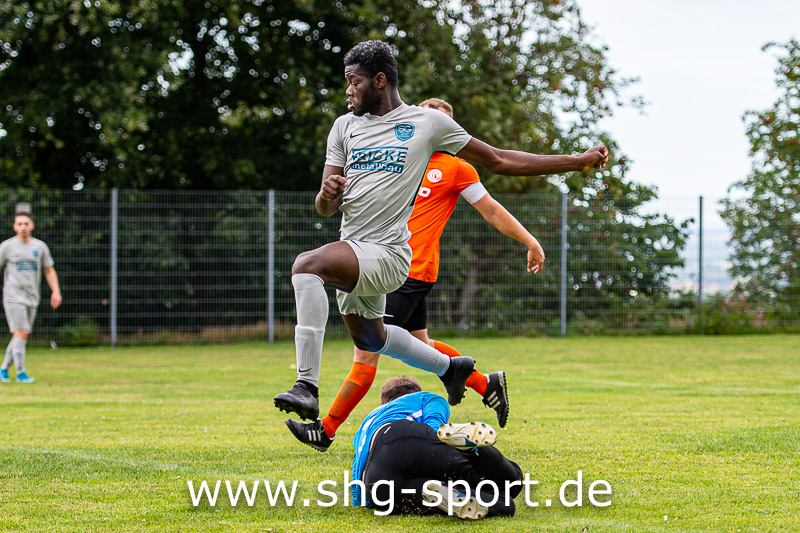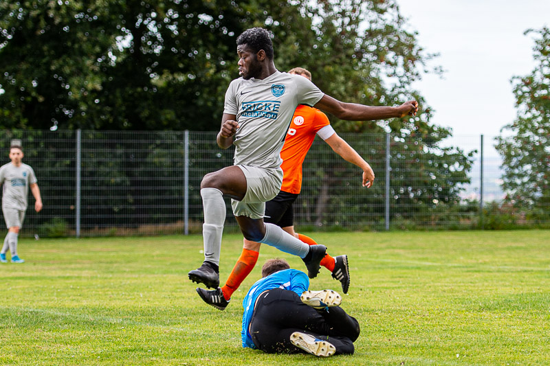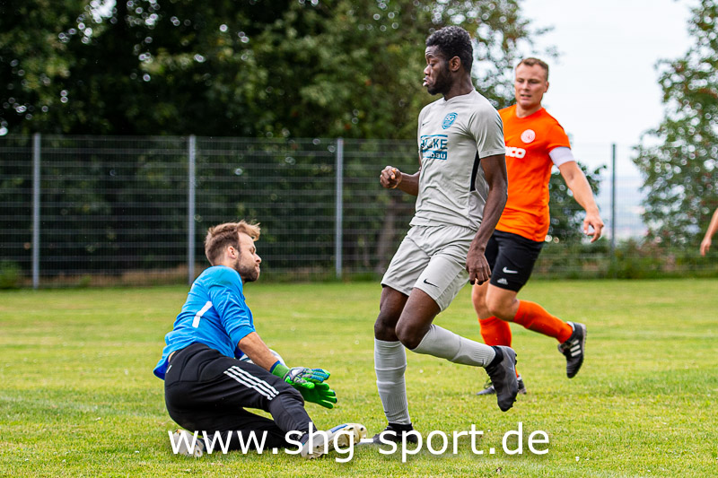 Dennoch gelangen einige gute Konter, mehrfach liefen SG-Angreifer allein auf den Torwart zu und versiebten alle Chancen. Ein Antritt von Hitaf Bamba brachte dann nach einem kurzen Solo das 1:0 (14.). Im Anschluss wirkte die SG-Abwehr hier und da zu leichtsinnig, ein Fehler brachte den Gästen das 1:1 durch Paul Stichling (43.). Nach dem Seitenwechsel wurden die Gäste defensiver, das brachte den Gastgebern mehr Platz und bessere Möglichkeiten zum frühen anlaufen. Nach und nach wurde das Tempo höher, und auch die Chancenverwertung verbesserte sich. Issouf Doumoy traf zum 2:1 (58.), Bamba legte zum 3:1 nach (66.). In der Schlussphase war es Timo Schmalz der mit den Toren zum 4:1 (73.) und 5:1 (81.) den Endstand herstellte. „Da musst du halt Geduld haben, mal agieren, mal reagieren, das müssen wir hinbekommen“, meinte Fuchs zur deutlich besseren zweiten Halbzeit.