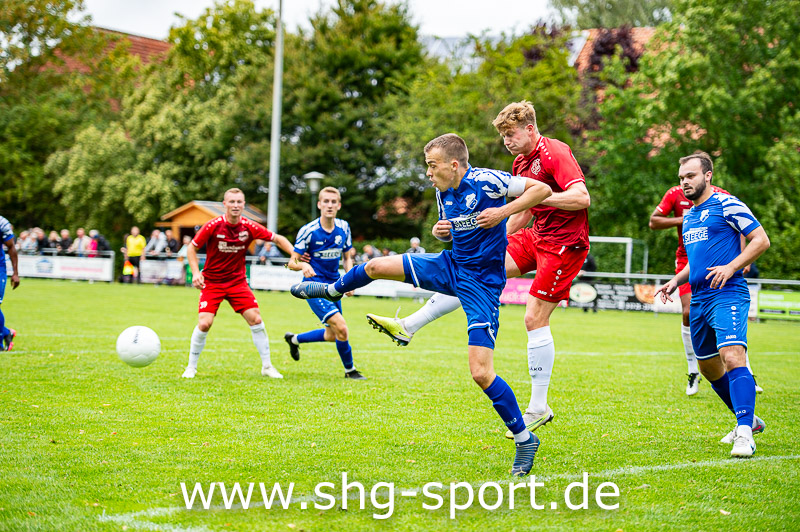 Die Anfangsminuten gehörten Rehren. Der Kreisligist überraschte den VfR wirklich eiskalt. Marvin Köpper zirkelte einen Freistoß aus 18 Meter Entfernung an der Mauer vorbei zum 1:0 ins VfR-Tor (3.). Während der MTV samt Anhang jubelte verhießen die Gesichter der VfR-Spieler nichts Gutes. Es dauerte gut zehn Minuten, dann hatte sich der VfR eingespielt. Jan-Christoph Thom lupfte den Ball an der Strafraumgrenze über einen MTV-Verteidiger, drosch den Ball dann volley zum 1:1 ins Netz (15.). Nur drei Minuten später köpfte Saif Hussain eine Maßflanke zum 2:1 ins MTV-Tor (18.). Der endgültige KO kam binnen weniger Minuten. Evesen schraubte das Tempo noch einmal hoch. Lennard Heine (29.) traf zum 3:1, Niko Kleiber zum 4:1 (30.), Lennard Heine erzielte mit dem 5:1 sein zweites Tor im Spiel (33.).