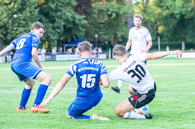 Robin Rösemeier-Scheumann enteilte auf der rechten Außenbahn, zog leicht nach innen und schob den Ball an MTV-Keeper Ben-Elias Förstel zum 1:0 in die lange Ecke (20.). Rehren reagierte mit gesteigertem Engagement, drängte Enzen zurück und kam zu einigen Großchancen. Die beste vereitelte SWE-Keeper Bendix Meier mit einer Glanzparade. Gerade als Enzen anfing sich von dem Druck zu befreien gelang Julian Lattwesen der 1:1-Ausgleich (40.). Im zweiten Spielabschnitt erwies sich zunächst Rehren als die bessere Mannschaft, die nach einem Torwartfehler durch Tobias Carstens 2:1 in Führung ging (62.). In der Schlussphase verwandelte Lattwesen einen Elfmeter zum 3:1 (80.). Enzen rannte in den Schlussminuten an, kam jedoch nur noch durch Lennart Faul zum 2:3-Anschlusstreffer (83.).