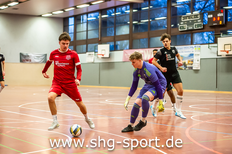 Die Halbfinalspiele gingen an die Favoriten. Evesen setzte sich mit 2:0 gegen Lindhorst durch, Enzen gewann 3:1 gegen Nienstädt. Im Spiel um Platz drei gab Nienstädt irgendwann auf, Lindhorst siegte deutlich mit 8:1. Das Finale ging dann überraschend klar an Enzen. Evesen versuchte sein Spiel aufzuziehen, es fehlten die schnellen vertikalen Vorstöße, Enzen stand defensiv kompakt und blockte die Angriffe des VfR immer wieder ab. In der Offensive hatte der spätere Turniersieger deutliche Chancen, Karaniyot Singh, Hasan Tekin, Kevin Wöbbeking und Ole Müther erzielten die Tore zum 4:0-Finalsieg.