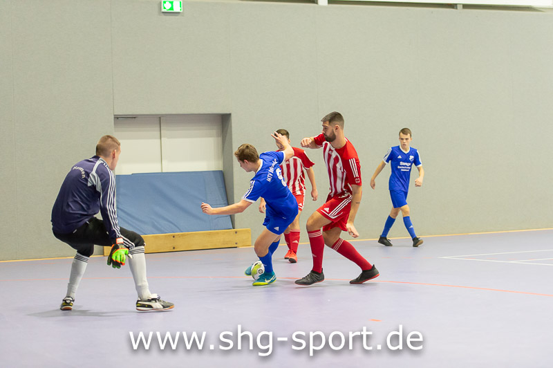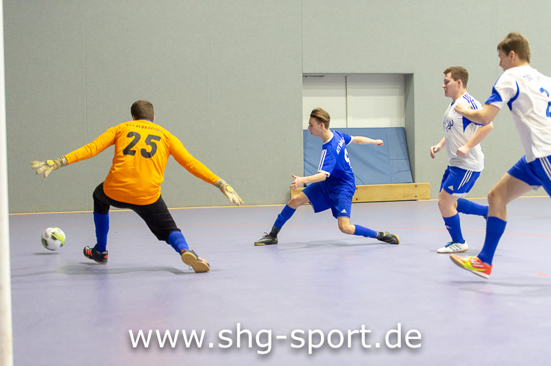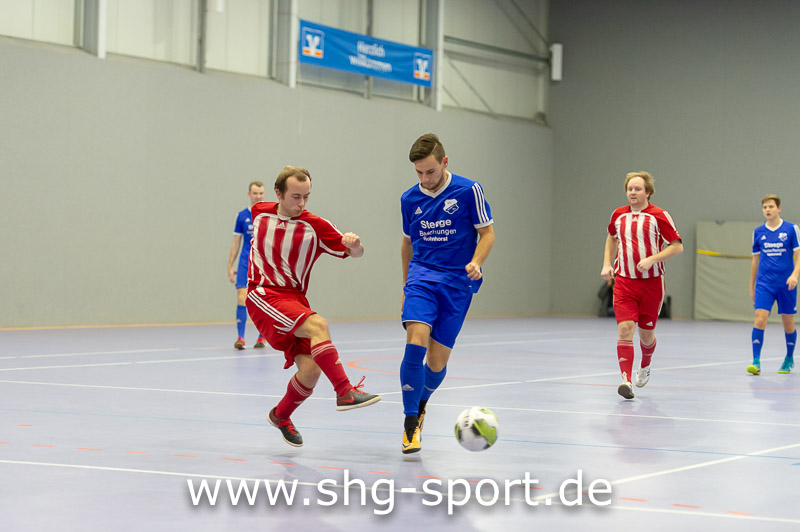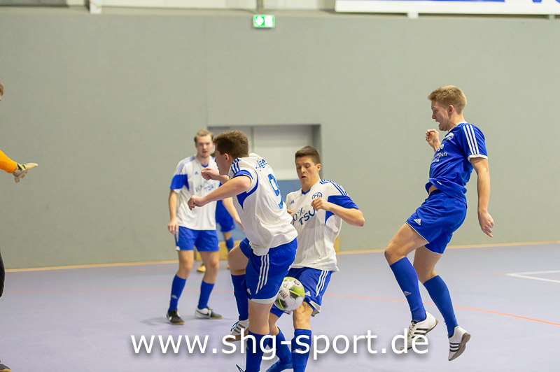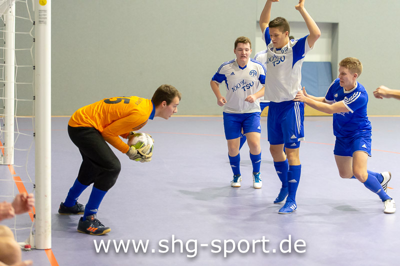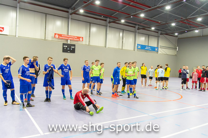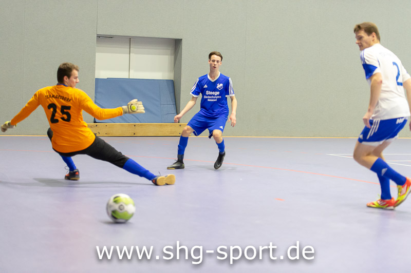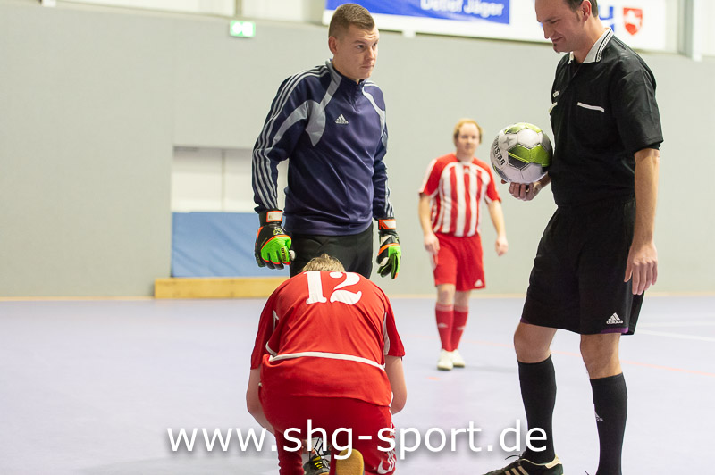 In der Gruppe B schaffte keine Mannschaft ungeschlagen den Einzug ins Halbfinale, hier blieben auch die Überraschungen aus. Bis auf ein Spiel, dass letzte Gruppenspiel brachte Stimmung auf die Tribüne. Der TSV Algesdorf II war bis dahin ohne Punktgewinn, wurde gegen Rehren von der Tribüne angefeuert und verdarb dem Gegner den Gruppensieg durch einen umjubelten 3:1-Erfolg. Das Spiel um Platz drei wurde zur Geduldsprobe, Hevesen lag schon 1:3 hinten, glich zum 3:3 aus und erzwang ein Neunmeterschießen. Hier setzte sich Sachsenhagen mit 10:9 durch, sowohl Dennis Strauss im Sachsenhäger Tor als auch Hevesens Keeper Wehage zögerten eine frühere Entscheidung mir ihren Paraden hinaus.