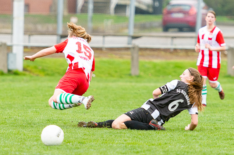 SG Rodenberg - VfL Eintracht Hannover 4:1 (3:0). Die Gastgeberinnen starteten furios in das Spiel, schon in der 1. Minute erzielte Sophia Burkowski die 1:0-Führung. Im Anschluss spiegelte der Spielverlauf den Tabellenstand wider, die SGR bestimmte gegen den Tabellendrittletzten das Geschehen. Und sie hatten es offenbar eilig, nur zehn Minuten nach der Führung erhöhte Maike Wittekindt auf 2:0 (11.). Hannover kam zu keinen zwingenden Chancen, kurz vor der Pause erhöhte Burkowski mit ihrem zweiten Treffer auf den 3:0-Halbzeitstand. In der zweiten Halbzeit rückte Hannover weit auf, versuchte Rodenberg auf dem sehr holprigen Untergrund unter Druck zu setzen. Das gelang zeitweise, im Gegensatz zum ersten Durchgang kamen die Gäste jetzt auch zu Torchancen. Das hohe Aufrücken wurde allerdings schnell bestraft, ein Pass aus der Rodenberger Hälfte erreichte Maike Wittekindt, die mit dem Ball auf und davon ging und die Gäste-Torhüterin zum 4:0 (52.) überwand. In der Folge wurde das Spiel immer zerfahrener, Rodenberg war ab und an nicht mehr so konzentriert, Hannover fehlten die Mittel, um wirklich gefährlich zu sein. Der Ehrentreffer der Gäste fiel durch einen Foulelfmeter, den Marie Weitemeier verwandelte (69.). Bis zum Schlusspfiff gab es auf beiden Seiten noch Chancen, zählbares sprang nicht mehr heraus.