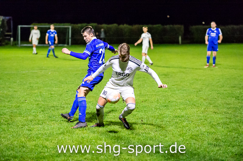In der ersten Halbzeit verlief das Spiel bis auf zwei Momente ereignislos. Nach fünf Minuten hatte Rehren die erste Chance durch Julian Lattwesen, dessen Schuss flach am Tor vorbeiging. Das es war es dann, auf beiden Seiten brachten die Kontrahenten gerade im letzten Angriffsdrittel nichts genaues zustande. Zwingende Chancen ergaben sich nicht, nur bei Eckbällen herrschte Betrieb in den Strafräumen. Dann die 35. Minute, Julian Meyer im Zusammenspiel mit Julian Lattwesen, Meyer hatte plötzlich Platz. Der Linksfüßer zog mit rechts ab und schlenzte den Ball völlig überraschend zum 1:0 ins Algesdorfer Tor (35.). In den folgenden Minuten war Rehren spielbestimmend. Als Julian Meyer auf der linken Seite zum Einwurf antrat, ließ sich Jahn etliche Meter weiter zu einem Tritt gegen einen Algesdorfer Spieler hinreißen und flog mit rot vom Platz (41.).
