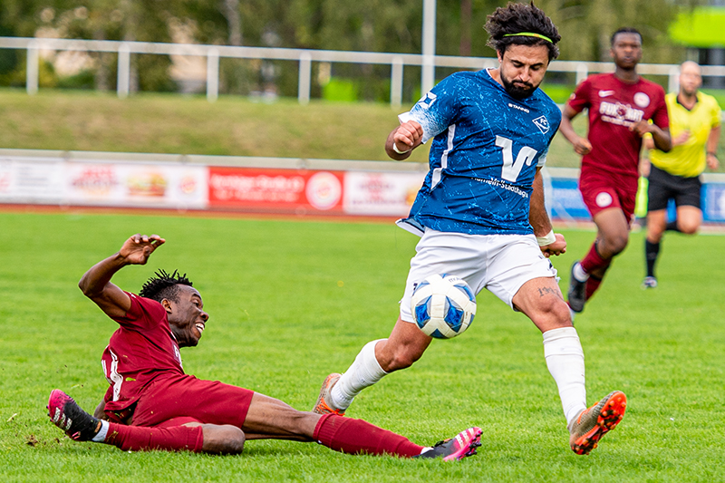 Und weiter ging es, Belmin Bikic nahm einen Rückpass von der Grundlinie direkt und schoss den Torwart an. Bis zur Pause kamen noch Möglichkeiten von Saif Hussain per Kopf und Fischer dazu. Dann war da auch noch der Gegner, der einen Angriff über die linke Außenbahn startete, die Flanke wurde nicht unterbunden. Drei FC-Abwehrspieler waren sich nicht einig, Rouven Bräunig vollstreckte zum 1:0 (21.). Wenig später rückte die Gäste-Abwehr weit auf, wurde mit einem langen Ball überspielt. Mehmet Özgür traf am herausstürzenden FC-Keeper Leon Großkelwing vorbei zum 2:0-Pausenstand (38.).