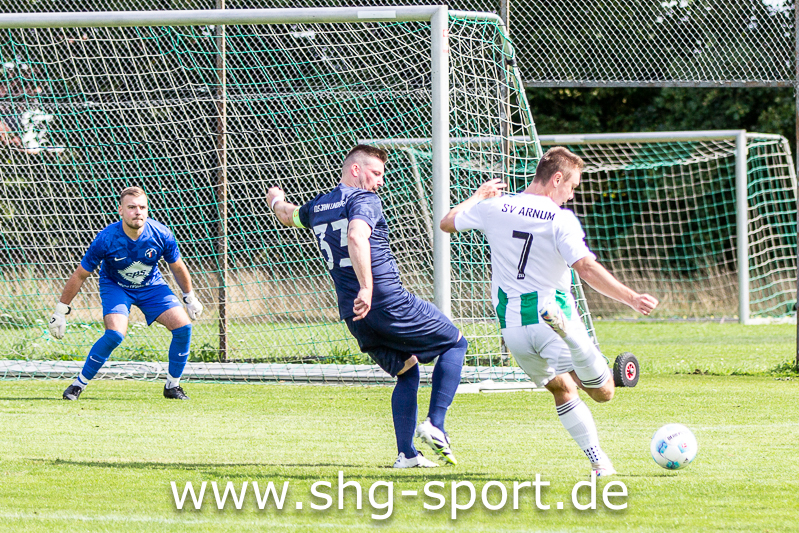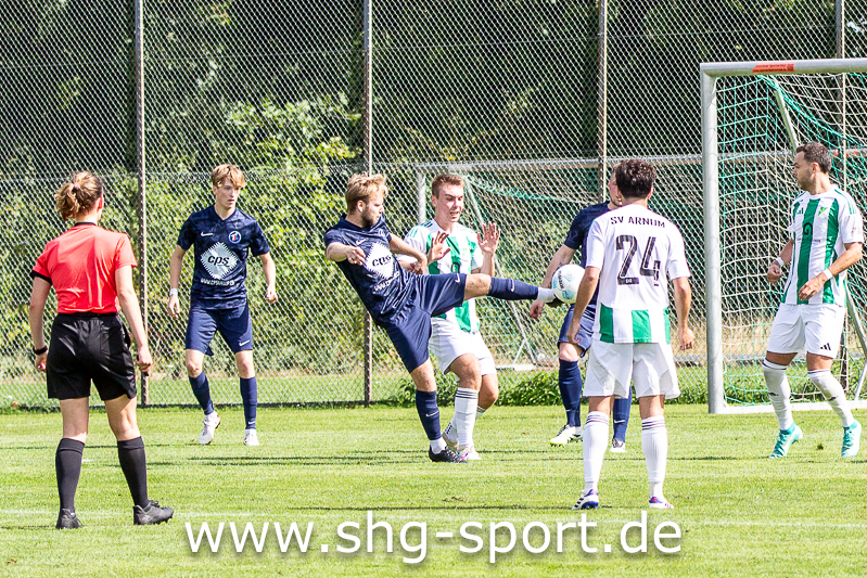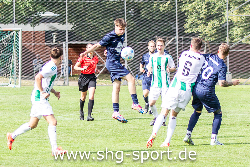 Von Beginn an übernahmen die Gastgeber die Initiative. Arnum hatte deutlich mehr Ballbesitz und setzte die Lindhorster Abwehr vor allem über die rechte Seite permanent unter Druck. In der 12. Minute klatschte ein Kopfball von Lars Littelmann nur an die Latte, acht Minuten später war das Glück der Gäste aufgebraucht: Nach einem Eckball landete der Ball bei Martin Pietrucha, der aus elf Metern zur 1:0-Führung einschoss. Erst danach meldete sich der TuS offensiv überhaupt zum ersten Mal, als Miles Sydow einen Schuss aufs Arnumer Tor abgab. In der 28. Minute jubelte Arnum erneut, doch der zweite Treffer wurde wegen Abseits zurückgenommen.
