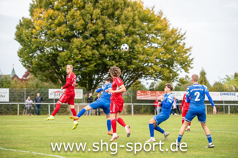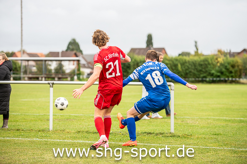 Vom Anpfiff weg war Rehren griffiger in den Zweikämpfen, einen Schritt schneller am Ball. Rinteln kam zu keinerlei geordnetem Aufbauspiel, dass wurde von Rehren wirkungsvoll unterbunden. Es dauerte einige Minuten bis Rehren auch in den Gäste-Strafraum vordrang. Die Angriffe liefen vorwiegend über die linke Seite, wo Julian Meyer ein ständiger Unruhe- und Gefahrenherd war. Meyer war es dann auch, der Rehren in Führung brachte. Sein Schuss von der linken Strafraumecke wurde beim Abwehrversuch von einem Rintelner Abwehrspieler zum 1:0 ins eigene Tor gelenkt (22.). Jetzt lief das Spiel endgültig nur noch auf das SCR-Tor. Im Anschluss an eine Ecke fiel der Ball Julian Lattwesen vor die Füße, er zog sofort ab und traf zum 2:0 (27.). Bis zur Pause verschoss der MTV noch weitere gute Chancen, verpasste es den Sack frühzeitig zu zu machen.