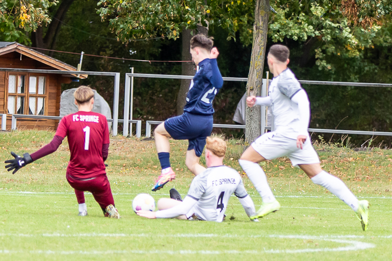 Der FC Springe kam vor der Pause zwar zu Chancen – insbesondere durch David Maj und Christoph Björn Samos –, doch Torhüter Bjarne Krause zeigte zwei starke Paraden und hielt die Führung fest. Direkt nach Wiederanpfiff nutzte der TJL erneut seine Konterstärke. Nach einer Ecke der Gäste ging es blitzschnell nach vorn: Jasper Möller leitete weiter auf Miles Sydow, der diesmal den mitgelaufenen Fabio Schütte bediente – 3:0 (48.). Anschließend mussten die Lindhorster gleich zweimal verletzungsbedingt wechseln: Luis Othmer und Niklas Gornig konnten nicht weitermachen. In der Defensive rückte Vincent Unruh ins Zentrum, der seine Aufgabe insgesamt solide erfüllte, ehe ihm in der 66. Minute ein folgenschwerer Fehler unterlief. Jonah Sölter nutzte den Ballverlust eiskalt und verkürzte auf 1:3.