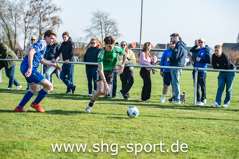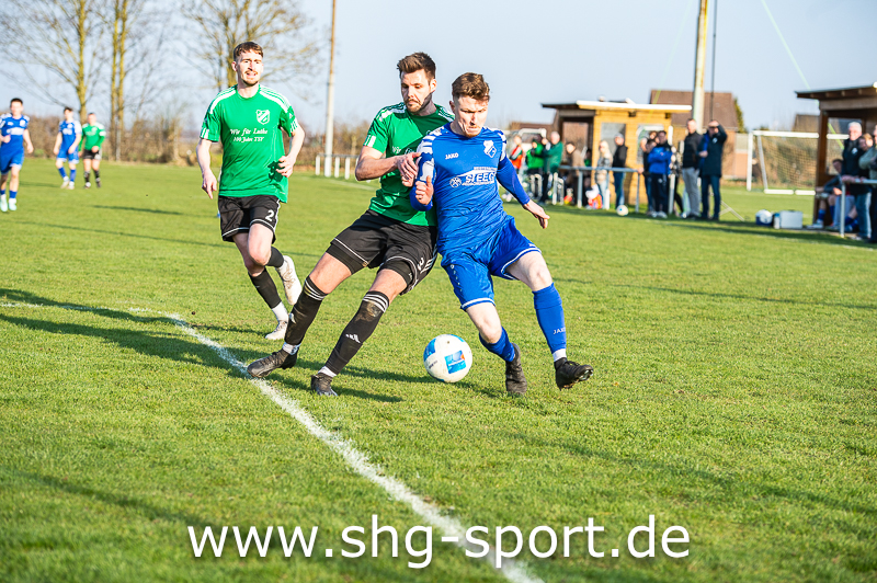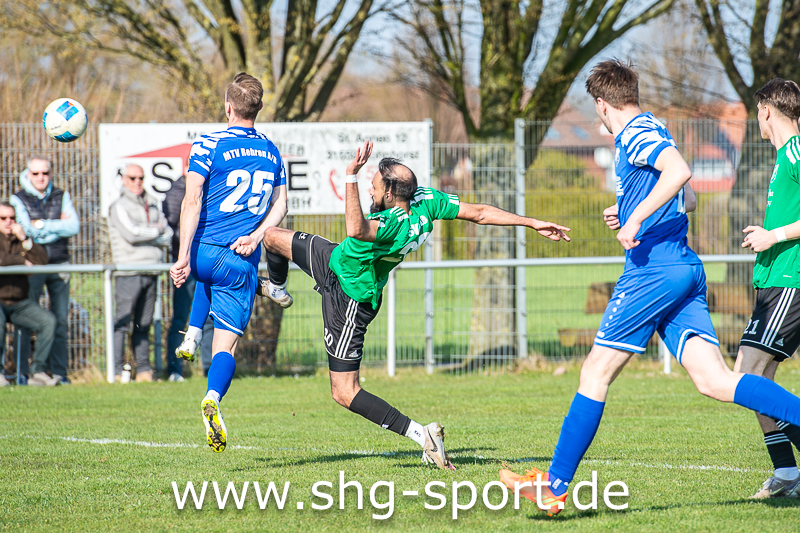 So brauchte es fast 40 Minuten ehe die Gastgeber wirklich gefährlich wurden. Ein Freistoß von der Strafraumgrenze führte dann zur Führung. Julian Lattwesen zirkelte den Ball über die Mauer an den Pfosten, der Ball sprang quer vor das Gästetor und fiel Grittner vor die Füße. Der traf dann zum 1:0 (39.). In der Nachspielzeit der ersten Hälfte trat Lattwesen einen Eckball halbhoch auf Höhe des ersten Pfostens, dort nahm Grittner den Ball volley und erzielte das 2:0 (45.+2). Nach dem Seitenwechsel vermittelte der MTV den Willen, jetzt endlich ernsthafter zu agieren.