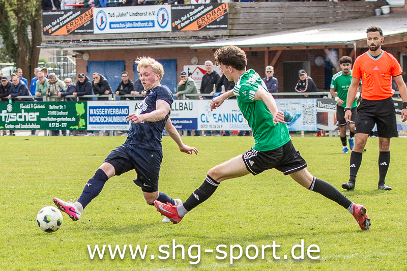 Die Gastgeber legten von Beginn an den Grundstein für den späteren Erfolg. In der ersten Halbzeit dominierte Lindhorst klar das Geschehen und erspielte sich zahlreiche hochkarätige Chancen. Die Führung hätte bereits früh deutlich höher ausfallen können, doch sowohl Fabio Schütte als auch Jan-Malte Sydow scheiterten jeweils freistehend am gegnerischen Torwart. In der 17. Minute fiel dann die verdiente Führung: