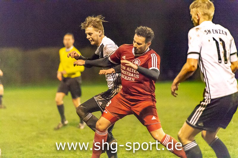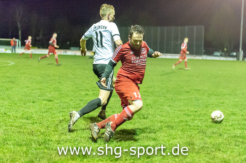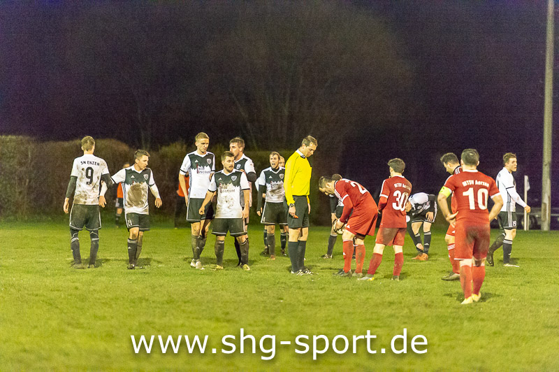 TuS SW Enzen - MTSV Aerzen 2:3 (1:3). Während die Gäste auf den neunten Tabellenplatz vorrückten mussten die Gastgeber einen weiteren Rückschlag im Abstiegskampf verarbeiten. Auf dem schwer bespielbaren Boden ging es bei zunächst strömenden Regen für die Gastgeber gut los. Ein schneller Angriff, Aerzen nicht sortiert, Patric Pluta setzte sich beherzt durch und erzielte das frühe 1:0 (6.). Mannschaft und Fans freuten sich noch über die Führung, da klingelte es schon im eigenen Tor. Diesmal Enzen nicht konsequent, Patrick Hoppe ließ vier, fünf Abwehrspieler stehen und erzielte den 1:1-Ausgleich. Es kam noch dicker, als Renke Mücke einen Schuss abwehren wollte, seine Grätsche veränderte die Flugbahn des Balles in das eigene Tor, Enzen lag 1:2 hinten (25.). Und noch war die Halbzeit nicht um, als ein weiterer Fehler in der Abwehr das 1:3 brachte. Luca Wischhöfer unterlief eine Flanke, Hoppe fiel der Ball frei vor dem Tor auf den Fuss, der Aerzener ließ sich nicht lange bitten und traf (33.).