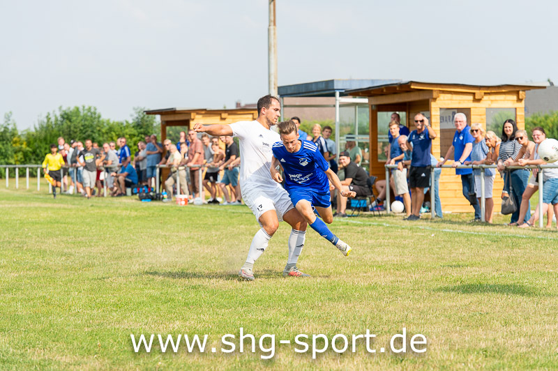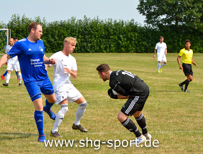 Der Aufsteiger legte einen Auftakt nach Maß hin: Schon in der 7. Minute segelte ein Eckball von Julian Lattwesen in den Gästestrafraum an den Köpfen von Freund und Feind vorbei, Gian-Luca Blume machte es mit der Schulter und traf zum 1:0. Nur drei Minuten später war Lattwesen selbst an der Reihe. Lattwesen enteilte den Abwehrspielern und zog ab, einmal, zweimal wehrte der Torwart ab, dann dachte sich die Gäste-Abwehr einmal darf er noch und legte den Ball vor die Füße von Lattwesen und diesmal klingelte es zum 2:0 (10.).