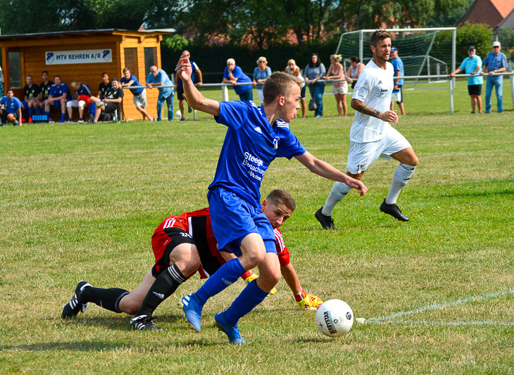 Rehren A/R. Im ersten Pflichtspiel der Saison 2019/20 hat der Aufsteiger MTV Rehren A/R durch einen 5:2 (2:1)-Heimsieg gegen den Ligakonkurrenten TuS Harenberg die zweite Runde im Krombacher-Bezirkspokal erreicht. Bis zum Punktspielstart am kommenden Wochenende gegen den MTSV Aerzen bleibt für Rehren noch einiges zu tun. Insbesondere die Rückwärtsbewegung dürfte im Fokus stehen, die war doch deutlich zu langsam und sorgte für die eine oder andere brenzlige Situation. Auch wurde dem einen oder anderen bewusst gemacht, dass im Gegensatz zur Kreisliga schlechte Ballannahmen und zögern bei der Entscheidungsfindung deutlich schneller bestraft werden.