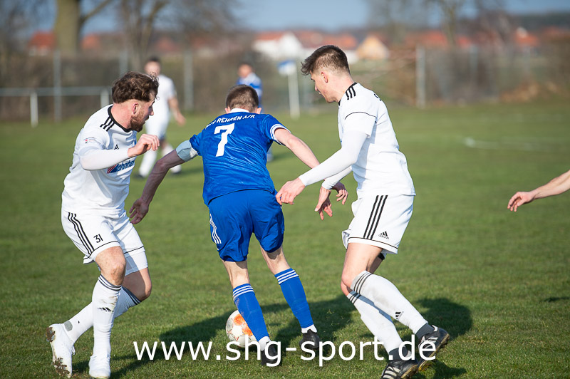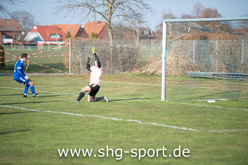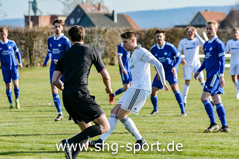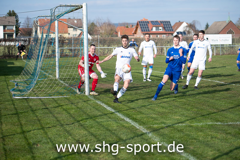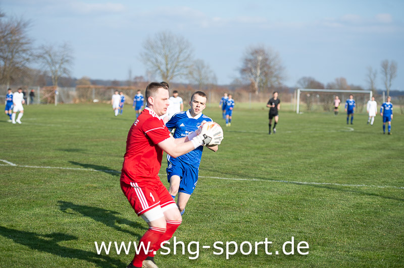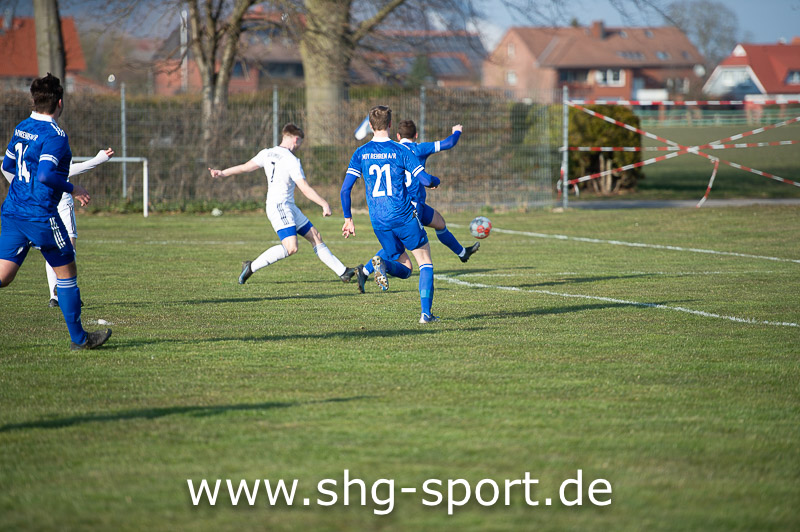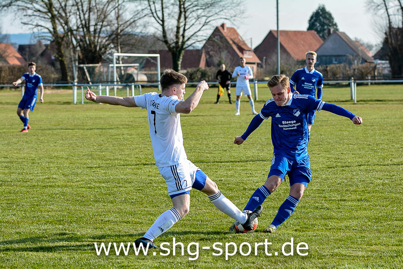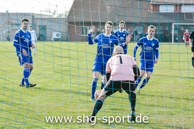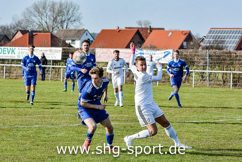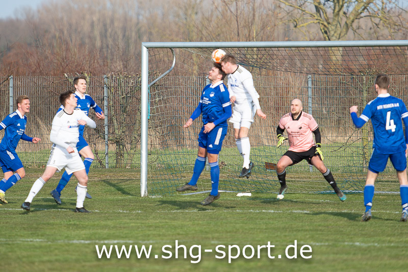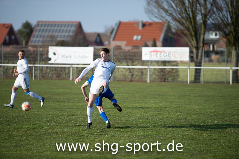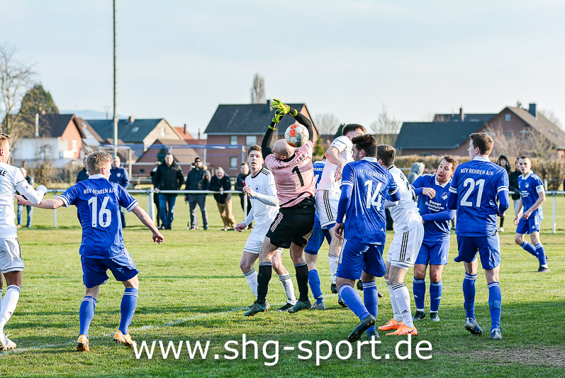 Steimbke präsentierte sich als technisch versierte Mannschaft, die einerseits Rehren unter Druck setzte, andererseits im gesamten Spiel nicht viel zwingendes erreichte. Die erste Chance hatten die Gastgeber, als im Anschluss an eine Ecke Konfusion vor dem Gäste-Tor herrschte. Dem Gäste-Keeper ging die Orientierung verloren, Rehren brachte den Ball nicht ins leere Tor. Julian Lattwesen lief wenig später in eine nachlässige Rückgabe zum Torwart, hatte aus spitzem Winkel keine Chance den Ball im Tor unterzubringen. Auf der anderen Seite setzte sich Jan Kramer-Hoffmann rustikal gegen die Rehrener Abwehr durch und traf zum 1:0 (30.) für die Gäste.