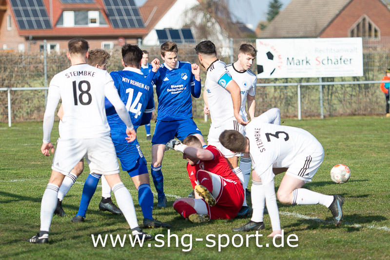 Noch vor der Pause wurde Rehren kalt erwischt, als die Gastgeber bei einem eigenen Angriff den Ball verloren. Steimbke brauchte vier Stationen, Simon Wilke hatte keine Mühe den Ball zum 2:0 zu verwerten (42.). Auch nach dem Seitenwechsel änderten sich die Kräfteverhältnisse nicht. Um das Spiel endgültig zu entscheiden brauchte Steimbke die Hilfe der Gastgeber. Jean-Luc Bruns versuchte einen Ball zu klären, zu spät, so landete die Kugel zum 0:3 im eigenen Netz (66.). Insgesamt zeigte sich Coach Lattwesen mit dem Spielverlauf „angesichts der Lage“ mit vielen Verletzten nicht unzufrieden. Schon bald sehen sich die Kontrahenten in der Aufstiegsrunde zur Landesliga wieder.