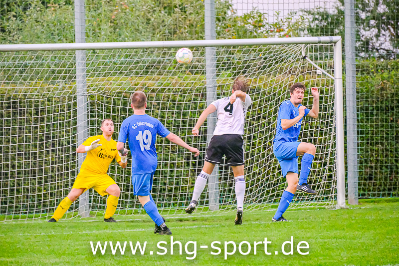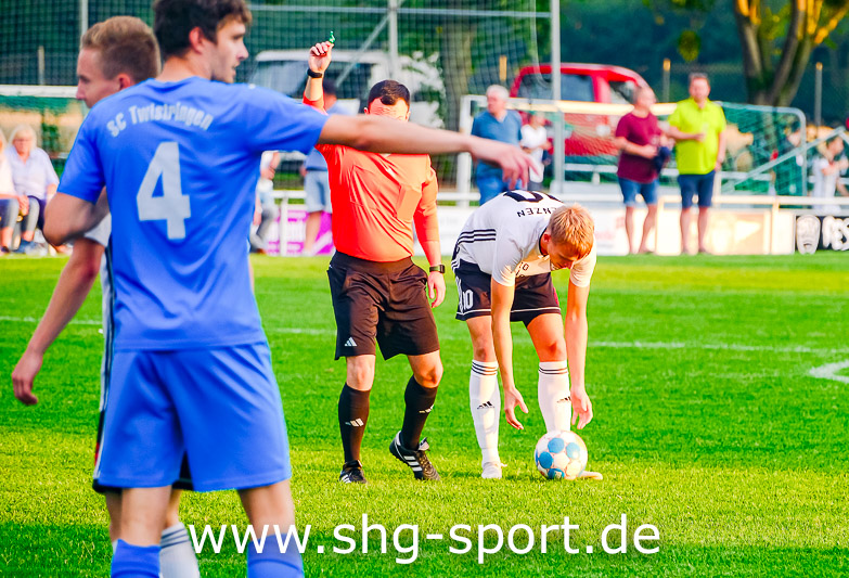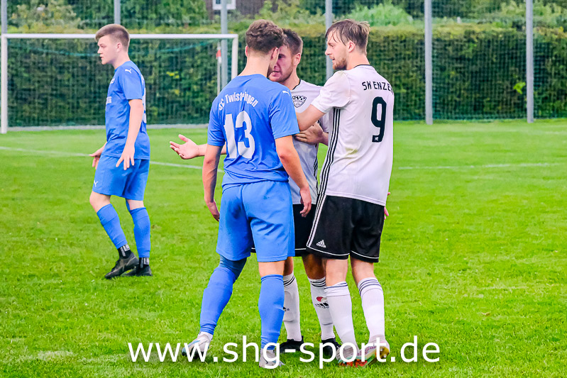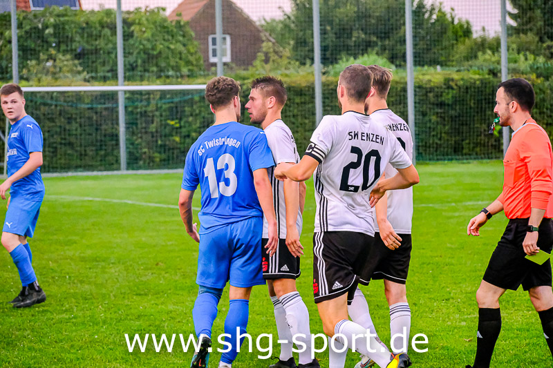 Das Spiel war kampfbetont und emotionsgeladen. Auch die Leute auf den Wechselbänken machten mit. Als eine – hier individuell betrachtet – unpassende Anmerkung ins Spielfeld gerufen wurde, kochten die Emotionen hoch. Gingen die Trainer von beiden Mannschaften sich fast an die Gurgel. Der umsichtige Schiedsrichter Marc-Oliver Resche hatte das Spiel jederzeit im Griff. Sorgte für Ruhe zwischen den Streithähnen, so dass es locker weiterging. Nach der Doppeltor-Führung schaltete Schwarz-Weiß einen Gang zurück, überließ Twistringen kurzzeitig das Mittelfeld. Mehr als eine Halbchance für Justus Schlake und zwei langgespielte Bälle, die Enzens Torwart Yayli sicherte, sprangen für die Gäste aber nicht heraus.