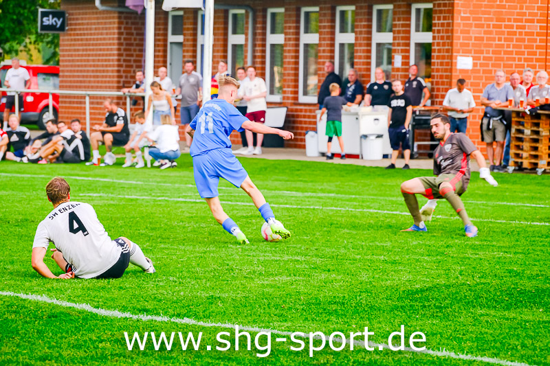 Schwarz-Weiß war nun gefordert – und lieferte. Philipp Meyer legte Tim Nimptschke im Strafraum um, Elfmeter! Tim Schwarze zeigte keine Gnade, haute die Kugel links oben in den Winkel: 1:1 (31.). Bis zur Pause begegneten sich die Mannschaften auf Augenhöhe. Doch für die 2. Halbzeit holte das Trainerteam um Steffen Potthast und Fabian Stapel die Joker raus. Torjäger Jan Köpper kam und auch der quirlige Lukas Urbansky. Die Wechsel machten sich sofort bezahlt. Lukas Urbansky, frisch in den Herrenbereich gewechselt, traf ins lange Eck zum 2:1 (46.). Weil es so schön war, legte Urbansky noch einen drauf. Setzte sich gegen Christoph Harms durch und schoss aus spitzem Winkel ein: 3:1 (66.). Zwischenzeitlich hatte Kevin Wöbbeking den nächsten Enzer Treffer auf dem Fuß. Doch Torwart Marcel Bavendiek parierte (52.).
