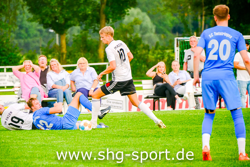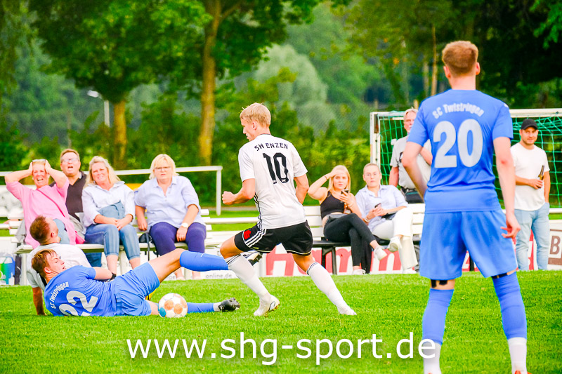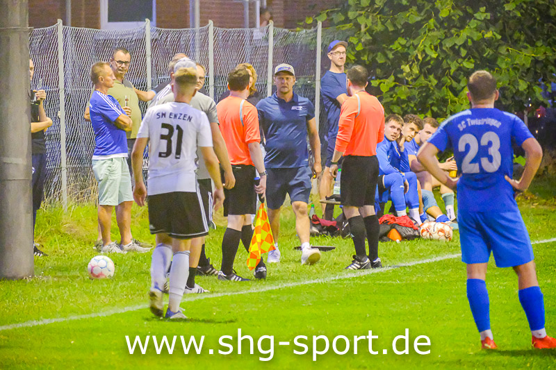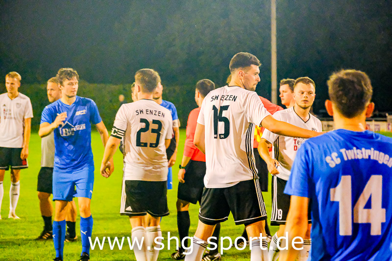 Enzen. In der 2. Runde des Bezirkspokals freute sich der TuS Schwarz-Weiß Enzen über ein Heimspiel, empfing den SC Twistringen aus dem Kreis Diepholz. Nett anzusehen, mal völlig unbekannte Trikots. Wenn dann der Heimverein den Leistungshammer nach der Halbzeit auspackt und die Gäste regelrecht vom Platz haut, zeigt sich das Publikum zufrieden. So war es auch. Der 5:1 (1:1) Erfolg machte die Enzer Seele glücklich. Eindeutiges Indiz waren die gefürchteten Schlachtrufe. „Schwarz-Weiß!“ brüllte die Einen. „Enzen!!!“ echoten die Anderen.