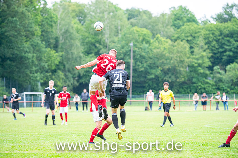 In der ersten Halbzeit lieferte der Kreisligist eine gute Leistung ab. Haste spielte geduldig, versuchte immer wieder über die Außenbahnen zum Erfolg zu kommen. Bückeburg brauchte eine ganze Weile, um sich in das Spiel zu finden. Schon nach zwölf Minuten hatten die Gastgeber Erfolg, Neuzugang Hans junior Koho drückte einen flach vor das Tor geschlagenen Ball in die Maschen. Zehn Minuten später verlor der VfL nach einer Unachtsamkeit den Ball in der eigenen Hälfte, wieder kam der Ball flach vor das Tor, Koho stand wieder richtig und traf zum 2:0. Jetzt war der VfL wach, begann in der Offensive stärker zu werden. Unter Druck unterlief der Haster Abwehr ein Fehler, Alex Wagener ging dazwischen und traf zum 1:2-Anschlusstreffer (29.).