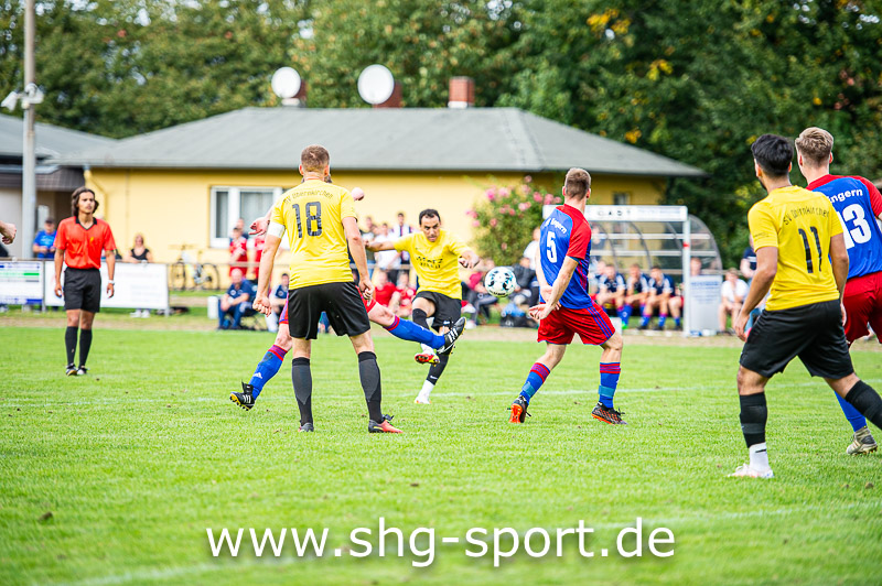 Dann war wieder die Gäste-Abwehr dran. Ein Freistoß von der rechten Seite segelte über die gesamte Abwehr hinweg. Coach Marco Gregor warnte noch lauthals: „Passt auf lang auf“. Das taten die Gäste nicht, am Ende der Flugbahn des Balles stand Bastian Schmalkoch, der ungehindert per Kopf das 2:0 erzielte (23.). Gleich danach zog sich der SVO vom aktiven Geschehen zurück und überließ Engern das Mittelfeld. Dabei kam es zu Chancen, die Engern allerdings nicht nutzte. Direkt nach Wiederanpfiff war es erneut Zenker, der allein vor dem SVO-Gehäuse auftauchte, aber diesmal zog er den Ball am Tor vorbei. Im Gegenzug segelte ein Eckball in den Gäste-Strafraum, Leberke stand allein und versenkte den Ball mit einer Direktabnahme zum 3:0 im Gäste-Tor (49.).