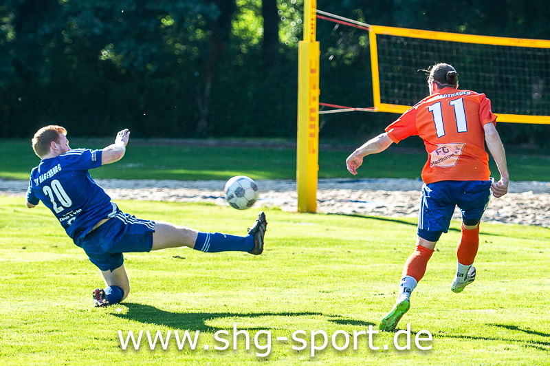 In der ersten Halbzeit hatten die Gäste den überwiegenden Ballbesitz, machten aber nichts daraus. Zuviel quer, zu wenig vertikal, teils ungenau und nicht schnell genug. Auf der anderen Seite sah Hagenburg dem Treiben zu, bewegte sich nicht genug, die Offensive hatte sich dienstrei genommen - bis auf eine Gelegenheit. Erst einmal hatte Hagenburg auf das FC-Tor geschossen, als der TSV über die rechte Seite konterte. Nick Pape setzte sich durch und zog ab, der Ball schlug zum 1:0 ein (38.). Das kam völlig überraschend, weitere Angriffsaktionen folgten nicht. Nach dem Seitenwechsel wurde das Spiel offener, aber nicht besser.