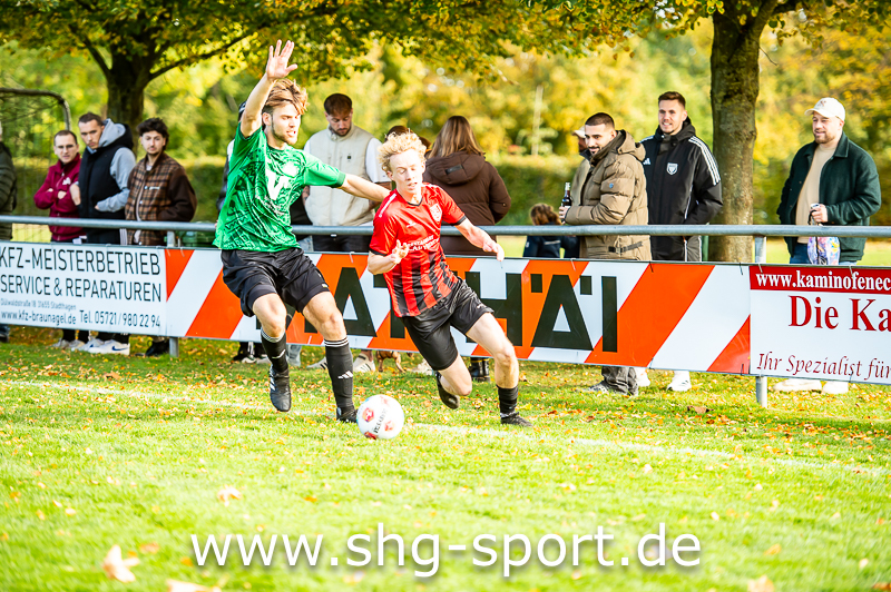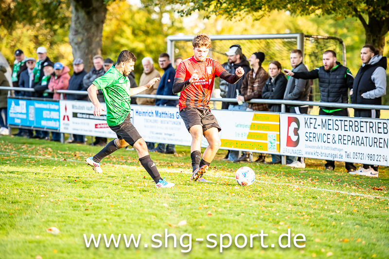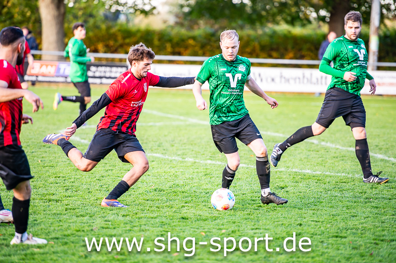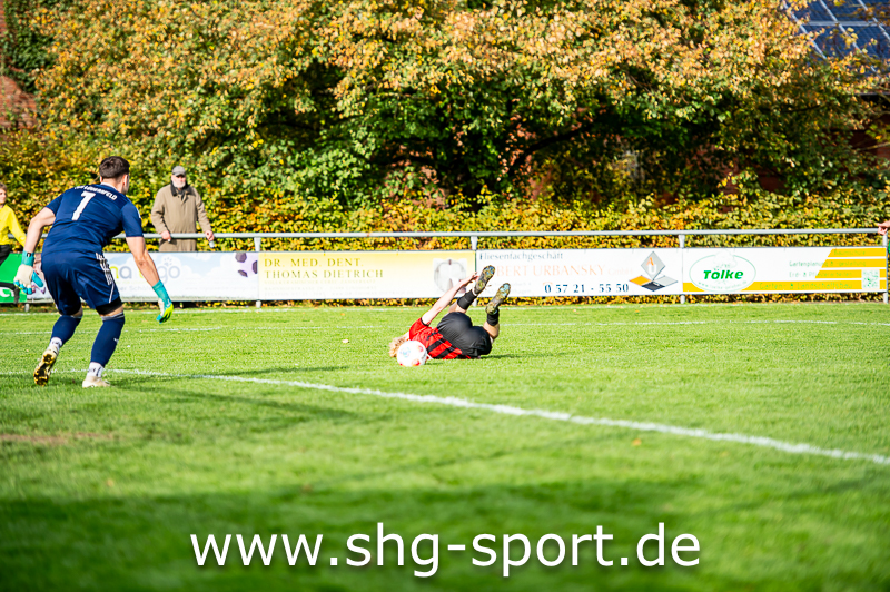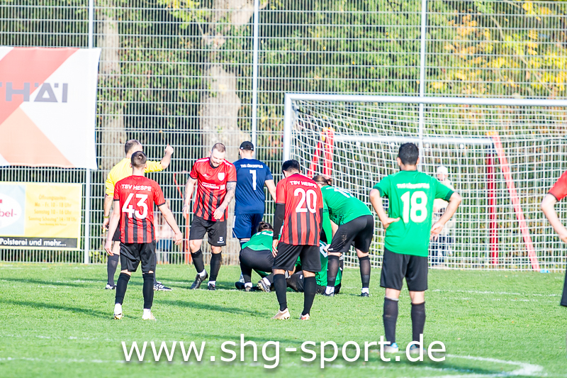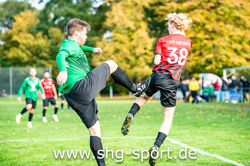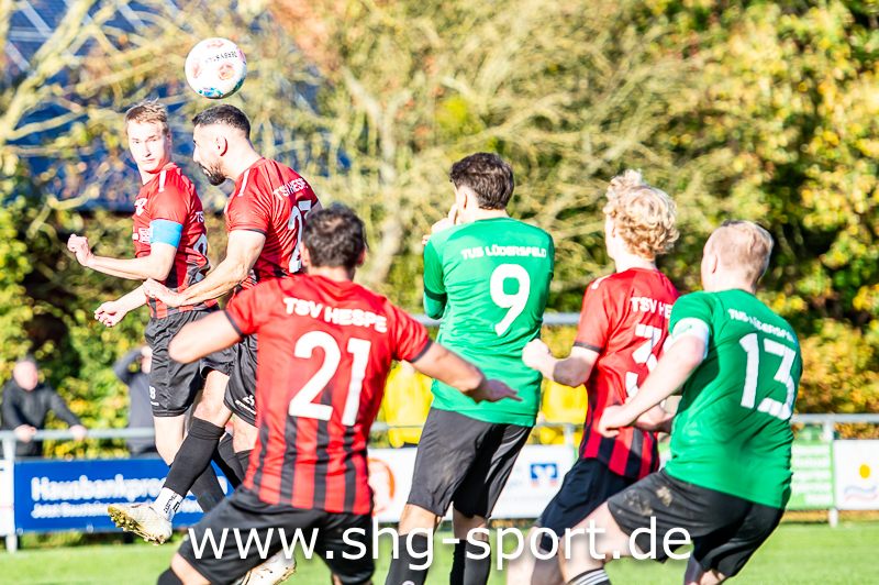 In der ersten Halbzeit verlief die Partie zunächst ausgeglichen. Taktisch geprägt, Lüdersfeld defensiv, Hespe offensiv. Es dauerte einige Zeit bis sich diese Ordnung lockerte. Lüdersfeld ging durch einen von Robin-Joel Maxelon verwandelten Foulelfmeter 1:0 in Führung (12.). Der Tabellenführer reagierte mit gesteigertem Offensivdrang, erspielte sich erste Chancen. Als Alexander Hartmann im Lüdersfelder Strafraum gefoult wurde verwandelte Selim Kilinc den fälligen Elfmeter zum 1:1 (22.). Nur drei Minuten später dribbelte Phil Maier durch die TuS-Abwehr und schloss zum 2:1 für Hespe ab (25.). Lüdersfeld kam zu eigenen Chancen, war aber nicht zwingend genug. Kurz vor der Pause kurvte Erik Mut durch die TuS-Abwehr, zog aus 18 Metern ab und traf zum 3:1 (42.). Hespe jubelte noch als Gianluca-Giuliano Maxelone auf das Hesper Tor schoss, der Ball durch Freund und Feind ging und dann zum 2:3 im Hesper Tor landete (44.).
