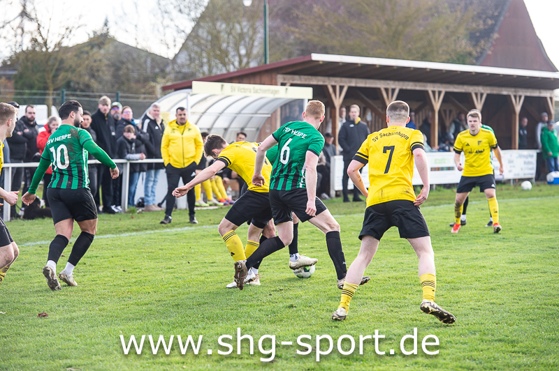 Es dauerte bis zur 25. Minute, ehe Sachsenhagen deutlicher in die Offensive kam. Tim Hensel hatte die größte Chance in der ersten Hälfte, sein Schuss aus spitzem Winkel wurde vom Hesper Keeper Filip Munevski gerade noch an den Pfosten gelenkt. In der Folge gab es immer wieder zerfahrene Phase mit schnellen Ballverlusten auf beiden Seiten. Nach dem Seitenwechsel wirkte Sachsenhagen wesentlich entschlossener in den Zweikämpfen, berannte das Hesper Tor. Zwingendes sprang dabei nicht heraus, In der 60. Minute verfehlte ein direkter Freistoß aus 20 Metern von Tim Hensel das Tor nur um Millimeter.