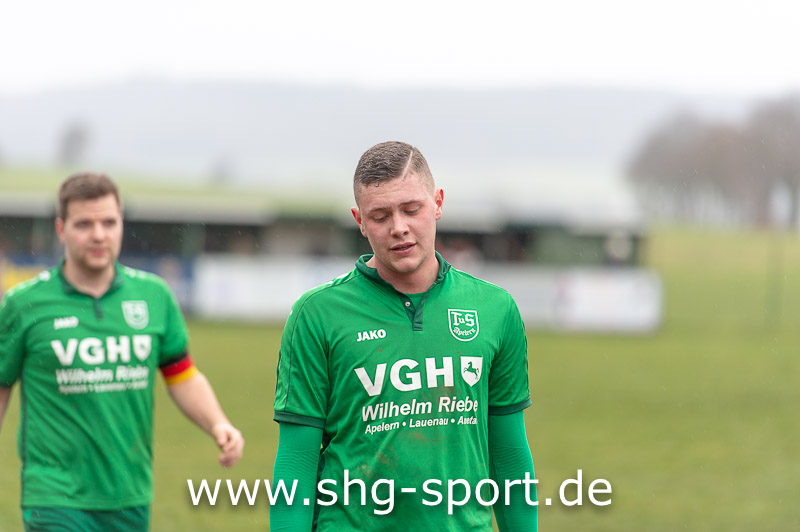 TuS Germania Apelern - TSV Steinbergen 5:1 (2:0). Das Spiel auf dem tiefen Boden des Platzes führte zu einigen Fehlern technischer Natur. Der starke Wind machte es nicht einfacher, so das die Begegnung kein gutes Niveau erreichte. Auf Apelerner Seite fehlten Ylli Syla, Giuliano Maione und Florim Mustafa. Die Gastgeber waren neu formiert, das war dem Spiel anzumerken. Nach einer zerfahrenen Anfangsphase baute Steinbergen mehr und mehr Druck auf und kam zu zwingenden Chancen. Jannik Sasse verpasste die Führung in der 27. Minute, Michael Mantik nur drei Minuten später mit einem Lattentreffer. In der 32. Minute war es dann soweit, Maximilian Bartels verwertete eine Hereingabe von der rechten Seite zum 1:0 für die Gäste.
