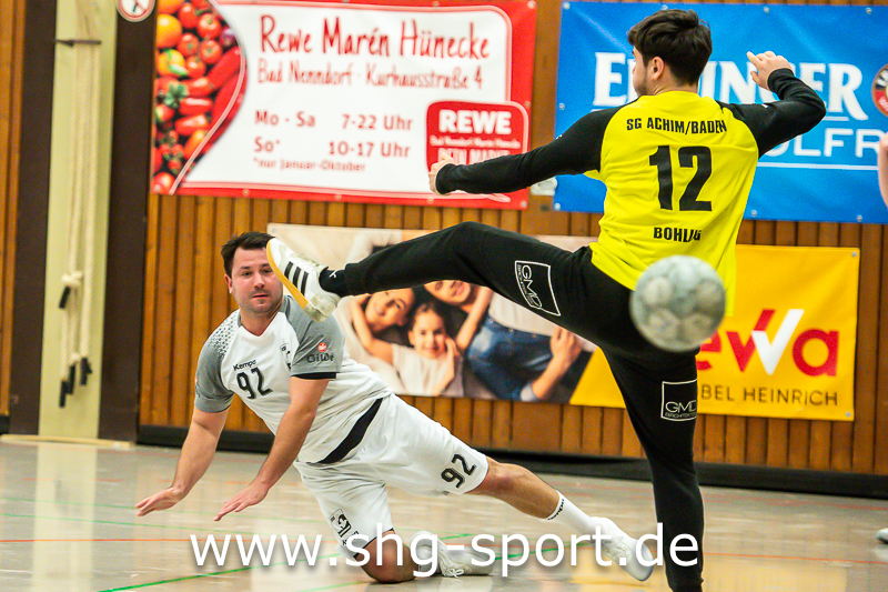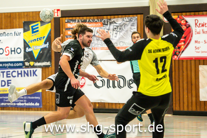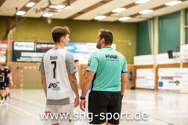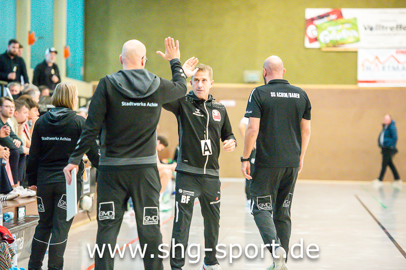 Dabei ließ Dietrich nichts unversucht, ließ in der Abwehr drei Systeme spielen. Vor der Halbzeit 5:1, zu Beginn der Halbzeit 4:2, dann 6:0, seine Abwehr kam zwar in Bewegung, schaffte es aber nicht den Gäste-Angriff nachhaltig zu stoppen. „Wir müssen darüber reden das wir in jedem System Zweikämpfe verlieren. Dann brauchen wir nicht über eine Situation sprechen, weil das zieht sich über 60 Minuten. Es ist uns nicht gelungen, das Spiel von Achim schlechter zu machen“, erklärte Dietrich. In der ersten Halbzeit lief die Partie zahlenmäßig ausgeglichen. Über weite Strecken hinweg lag die HSG knapp vorn, es ging über 4:4 (8.), 10:8 (16.) 13:13 (21.) bis zur 19:17-Pausenführung. Dabei gelangen auf beiden Seiten immer wieder schnelle Durchbrüche, so etwa Moritz Klamm auf Seiten der HSG, der fünf Treffer erzielte.