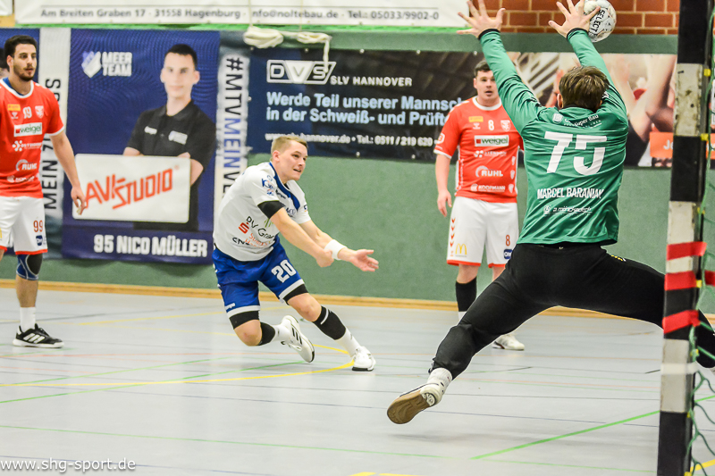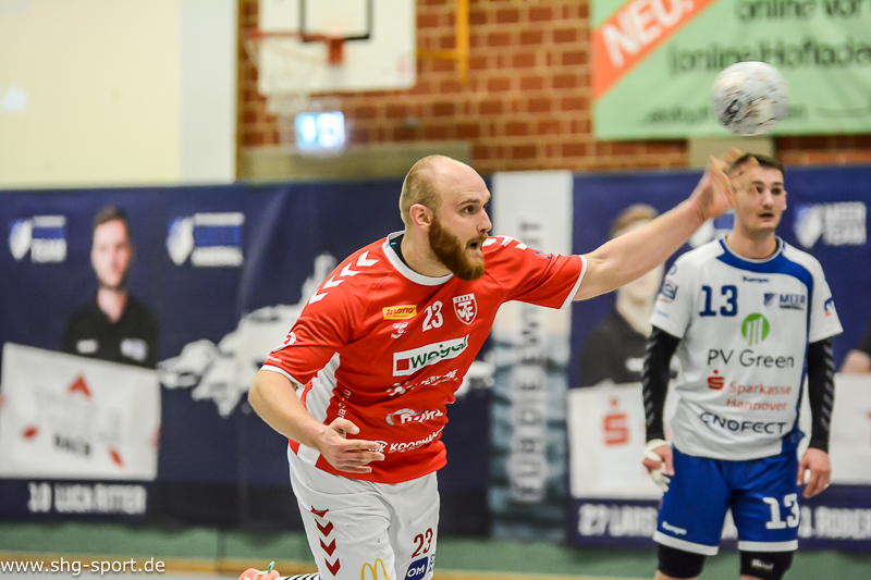 In Hälfte zwei wuchs der Rückstand zunächst auf 16:20 (36.) an, die Gastgeber kämpften sich auf 19:20 (38.) heran, glichen beim 23:23 (46.) aus. Nur zwei Minuten später lag der MTV wieer 23:25 hinten, dass Hin und Her ging weiter. In den Schlussminuten sah es beim 28:30 (56.) nicht gut aus, Lux nahm eine Auszeit. Offenbar zum richtigen Zeitpunkt, Großenheidorn glich zum 30:30 (58.) aus, ging in der 60. Minute 31:30 in Führung. Eine Sekunde vor Spielende wurde es bunt, Julius Bausch fing sich eine unnötige Zeitstrafe, der Cloppenburger Kevin Heemann musste mit de dritten Zeitstae runter. Joel Wolf vewandelte nah abgelaufener Spiel einen Siebenmeter zum 32:30. „Es war mehr Krampf und Kampf als Spiel, am Ende haben wir uns durchgesetzt“, erklärte Lux.