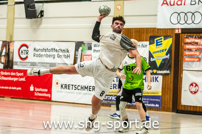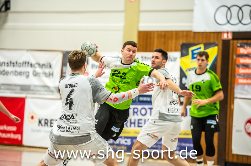 WALTRINGHAUSEN. Es war das letzte Spiel des Jahres 2025 und gleichzeitig der Beginn der Rückrunde: Der Handball-Regionalligist HSG Schaumburg hatte den TuS GW Himmelsthür zu Gast und beschloss das Jahr mit einem 34:29 (19:12)-Heimsieg. Die Stimmung in der Halle hielt sich in Grenzen, die dargebotenen Leistungen luden nur bedingt zum Feiern ein. „Es war kein gutes Spiel, wir hatten eine starke Viertelstunde“, erklärte Coach Timm Dietrich. Das war die Zeit zwischen der 15. und 30. Spielminute, die reichte der HSG um das Spiel praktisch zu entscheiden. Eine wichtige Stütze war dabei die stabile Leistung von HSG-Torwart Kjell Motzkus.
