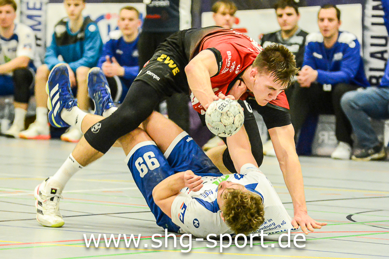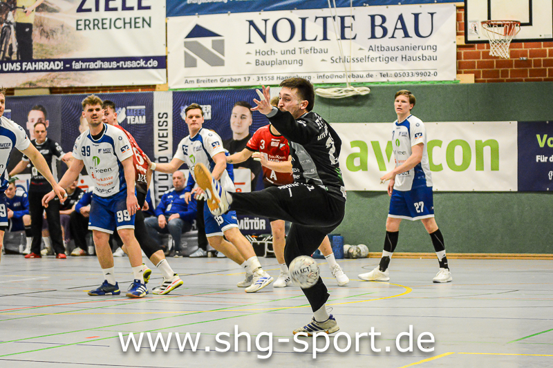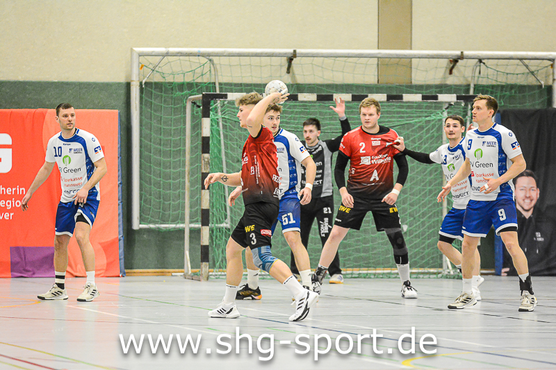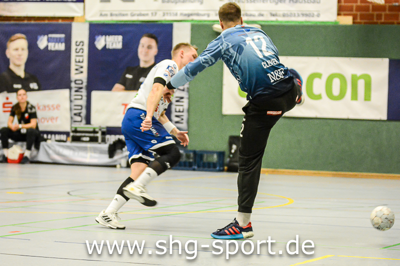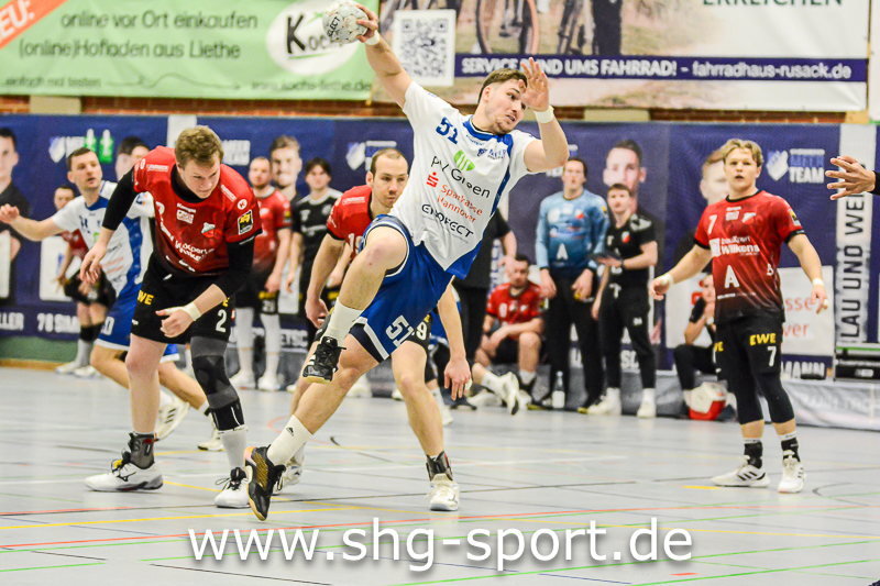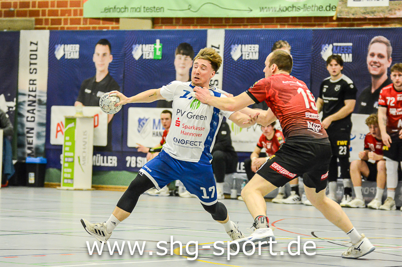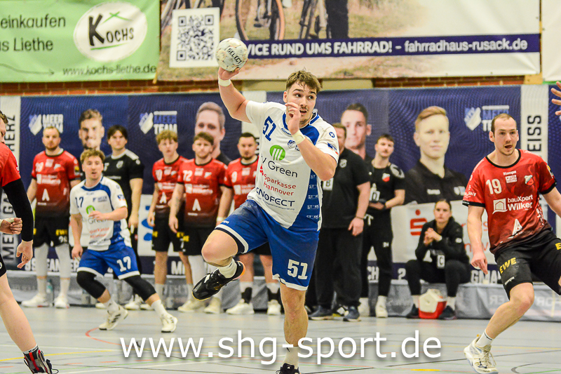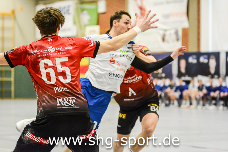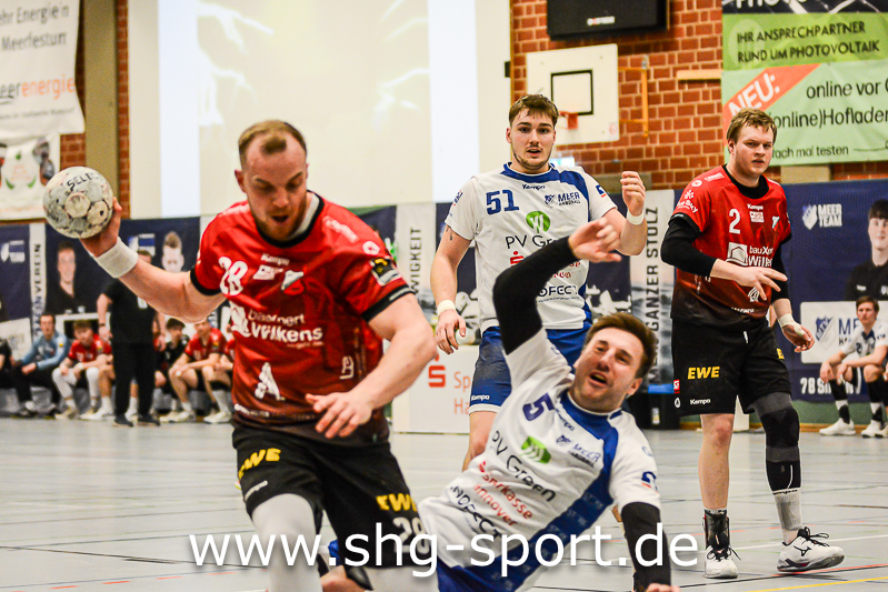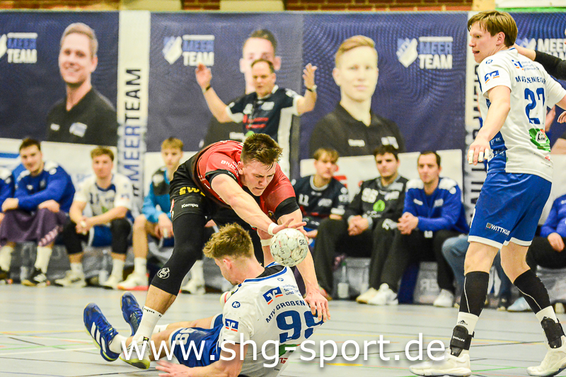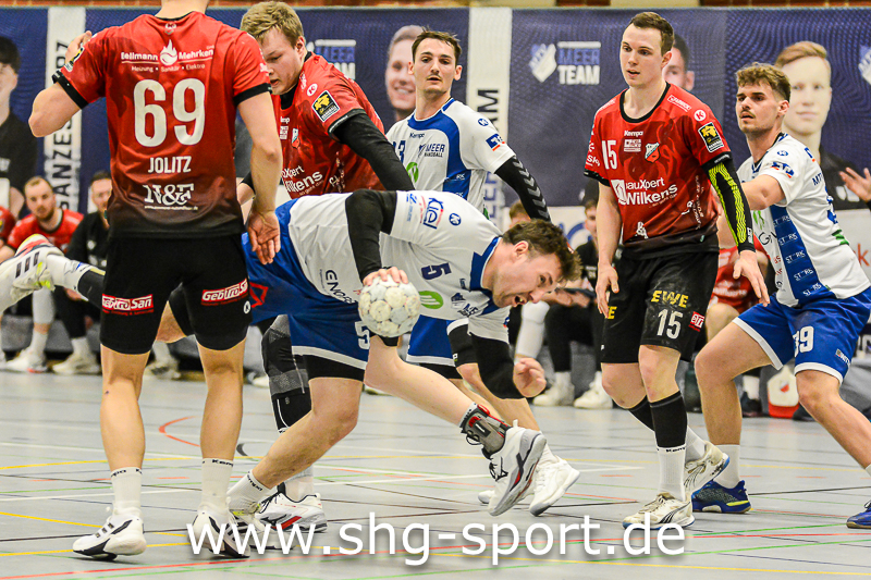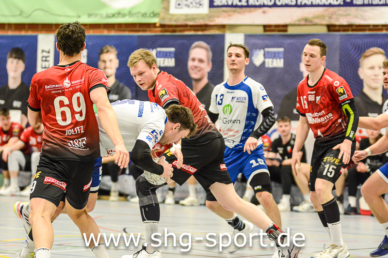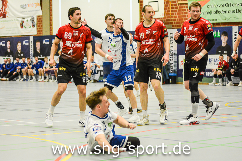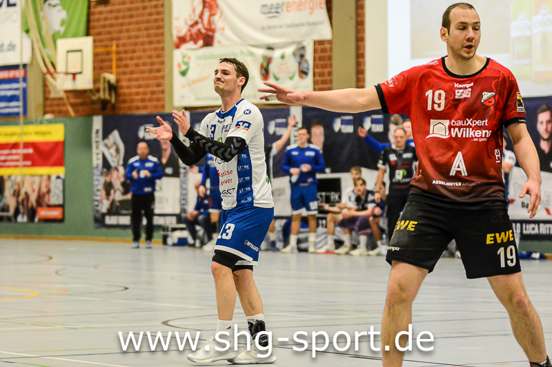 Es holperte an einigen Stellen bei den Seeprovinzlern. Die Abwehr samt Torhütern spielte eher untypisch, die linke Angriffsseite war blank. Dort spielte Thorben Buhre aushilfsweise, auf der Mitte quälte sich Joel Wolf schwer angeschlagen durch das Spiel. Mika Ritter und Maurice Nolte fehlten, Simon Marotzke war mit den A-Junioren unterwegs. „Wir bieten Kampf und Krampf“, beschrieb Lux das Geschehen. Das Spiel verlief zunächst mit wechselnden Führungen, 15:12 (24.), 15:15 (27.), 20:20 (36.), ab dem 20:22 (40.) liefen die Gastgeber einem Rückstand nach.