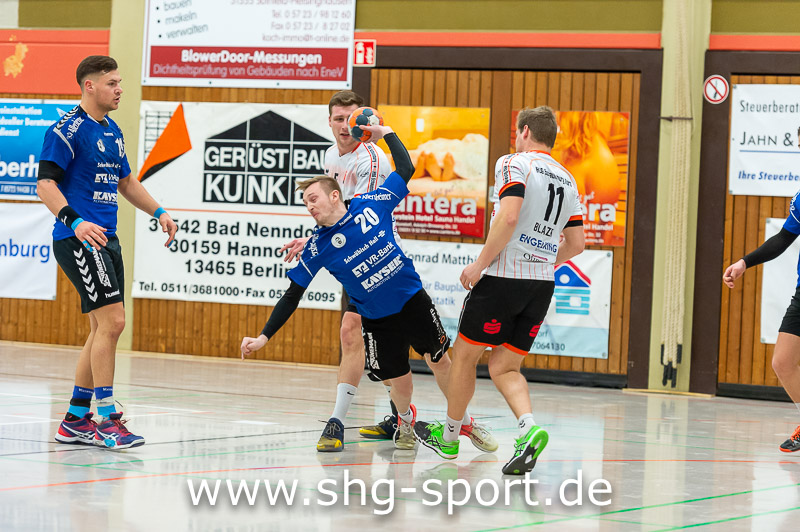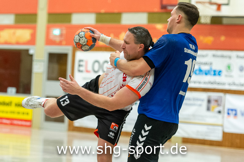 Auf der anderen Seite entschärfte Mevissen gleich mehrere hochkarätige Chancen. In der Abwehr bekamen die Gastgeber Deivas Eidukonis nie in den Griff, er entwickelte sich mit seinen sechs Toren vor allem in der ersten Hälfte zu einem echten Ärgernis für die HSG. Das Spiel verlief immer eng, mit wechselnden Führungen. In der zweiten Halbzeit brachte die HSG Alexander Müller nach wochenlangem, verletzungsbedingten Ausfall. Müller spielte in der Abwehr, er hatte bis dahin erst einmal trainiert. Beim 23:20 (52.) durch Lüer, trotz Erkältung mit neun Toren der beste HSG-Angreifer, sah alles nach einem Heimsieg aus. Doch bei der HSG schwanden die Kräfte, Stadtoldendorf kämpfte sich wieder heran und musste dann den für die HSG mehr als glücklichen Ausgleich nach abgelaufener Spielzeit hinnehmen.