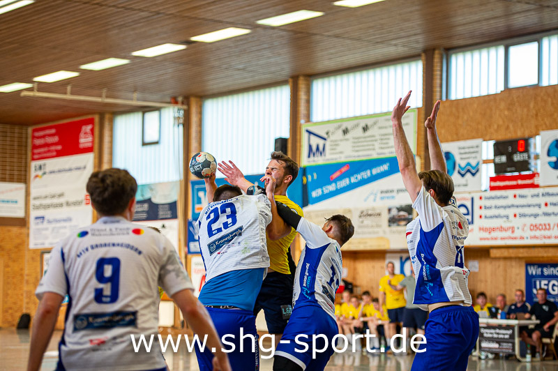 Es war lange, lange Zeit ein Spiel auf Augenhöhe, so sah es denn auch Gäste-Coach Jan Thaler. Aber als der Sauerstoffanteil in der überhitzten Halle immer weniger wurde drehten die Seeprovinzler noch einmal richtig auf. Über weite Strecken waren die Hausherren einem Rückstand nachgelaufen, lagen 6:10 (18.) zurück. Doch die Mannschaft von Coach Stephan Lux rappelte sich immer wieder auf, kam mehr und mehr in die Begegnung. Eine mehrmonatige Pandemie-Pause war so schnell nicht abzuschütteln. Dennoch, es war mit fortschreitender Spieldauer war bald zu ahnen, dass die Gäste in der Breite nicht so gut besetzt waren wie die Seeprovinzler.