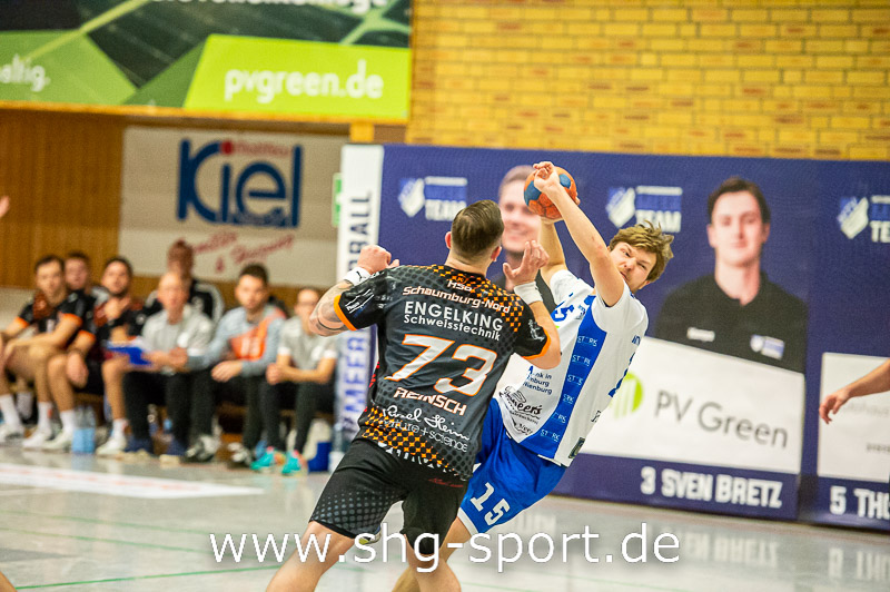 „Respekt an die Mannschaft, das war eine Superleistung. Am Ende fehlt das Personal, die Wechselmöglichkeiten waren eingeschränkt. Die Schiris haben gut gepfiffen, aber die progressive Bestrafung war eine Katastrophe“, sagte HSG-Coach Maxi Wölfel. Er bemängelte die Art der Bestrafungen, allein sechs von acht Zeitstrafen gab es in Hälfte zwei. Großenheidorn kassierte vier Zeitstrafen, eine in der zweiten Halbzeit. Erschwerend für die HSG kam dann die rote Karte für Max Dohmeier nach der dritten Zeitstrafe (45.). Das Spiel begann mit einem gehaltenen Siebenmeter von HSG-Keeper Lars Pommer, die Seeprovinzler trafen erstmals in der 6. Minute zum 1:2. Vergebene Chancen zogen sich auf Seiten der Gastgeber durch das gesamte Spiel.