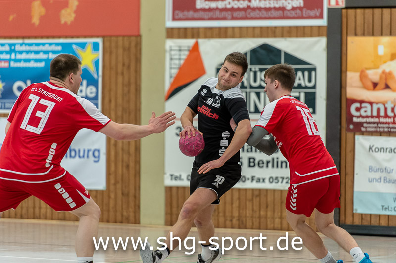 HSG Schaumburg Nord II - VfL Stadthagen 20:16 (8:7). Das Derby erfüllte die Erwartungen in keiner Weise. Die Gastgeber verteidigten mit Müh und Not ihre Tabellenführung, auf der anderen Seite mussten die Gäste einen Rückschlag im Kampf um den Klassenerhalt hinnehmen. Somit entsprach das Ergebnis der Tabellensituation, hüben wie drüben wurde nach 60 Minuten die gute Abwehrarbeit gelobt.
